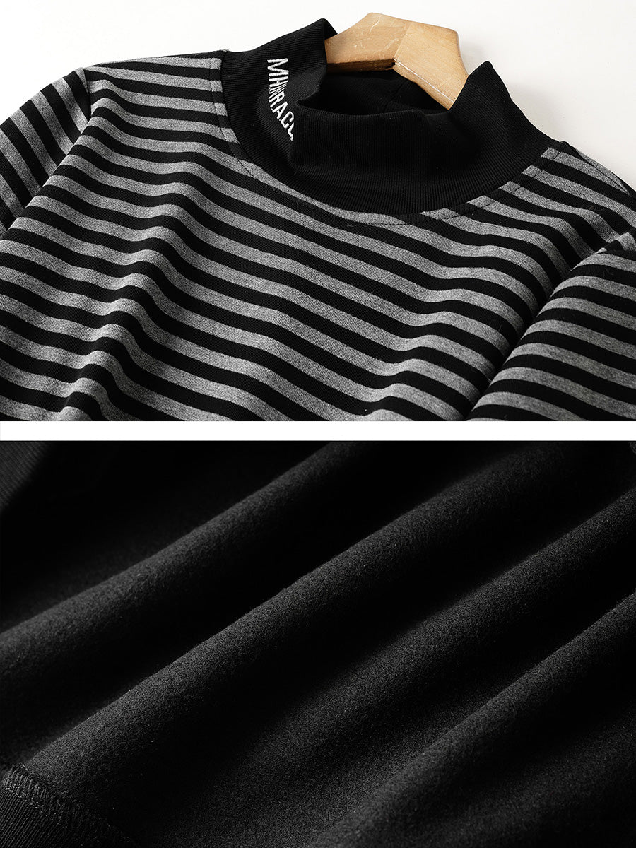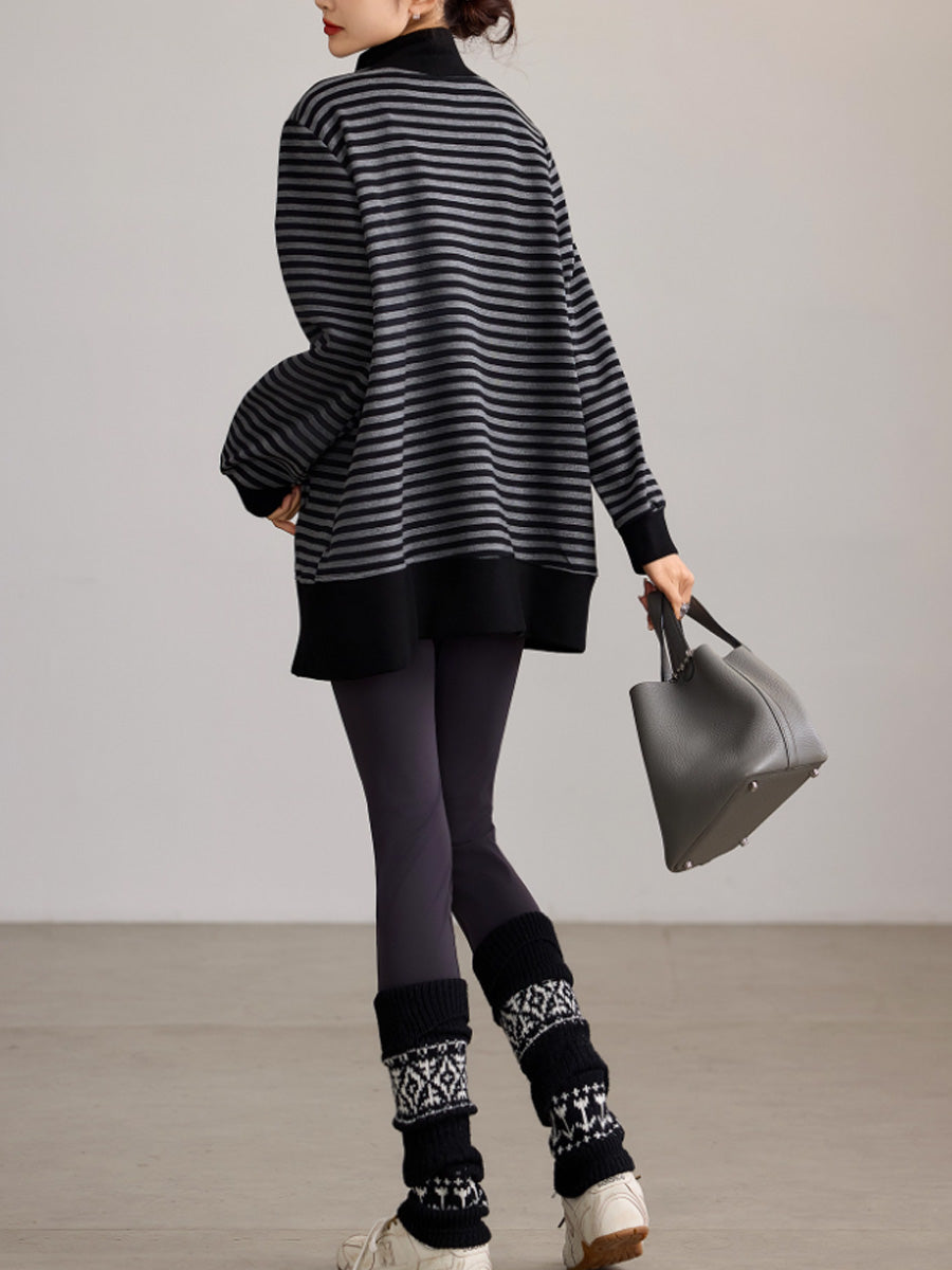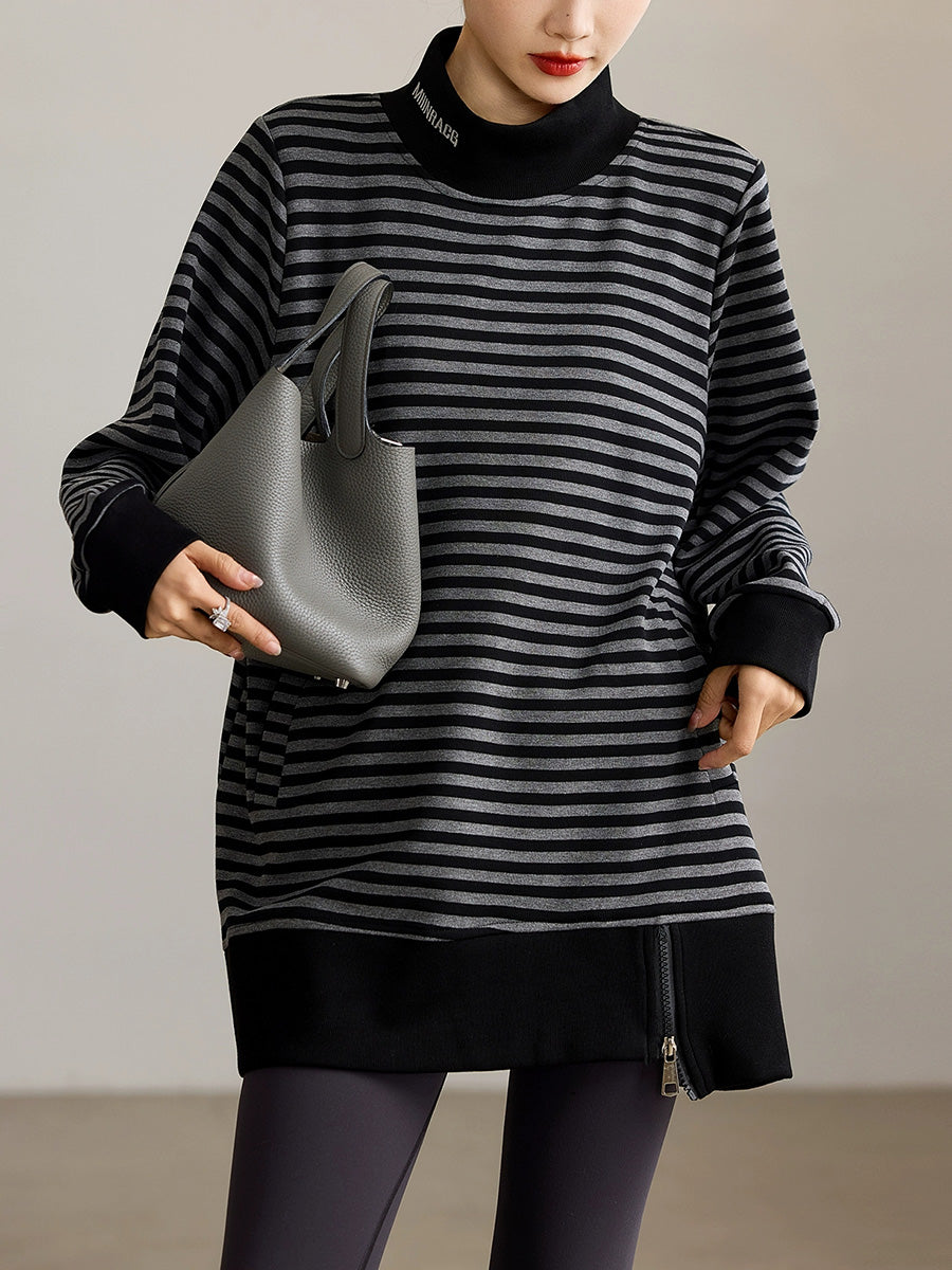 Women Artsy Autumn Stripe Turtleneck Blouse