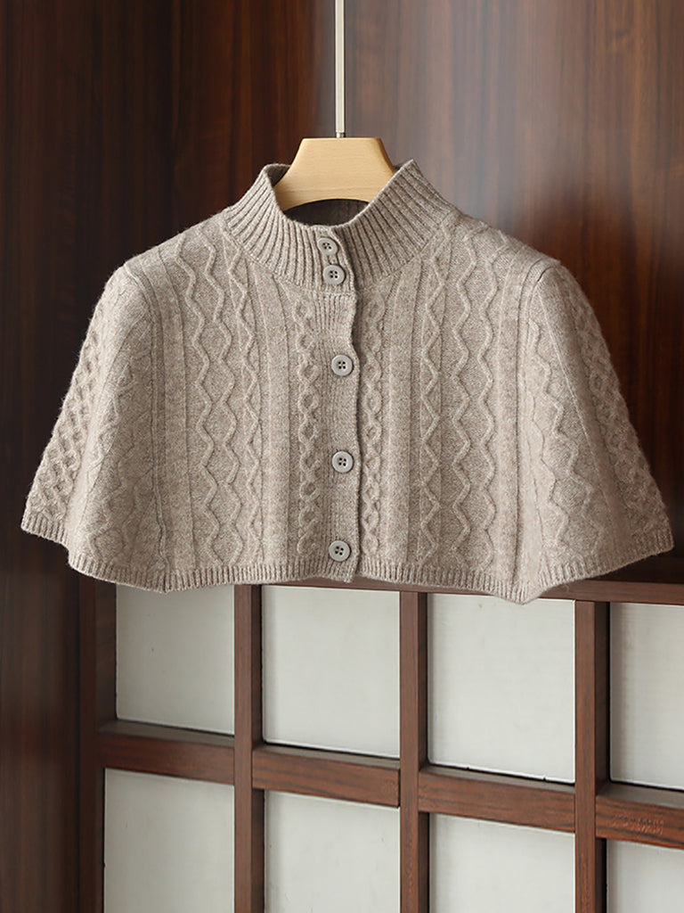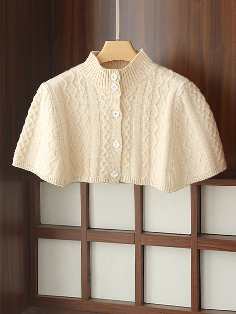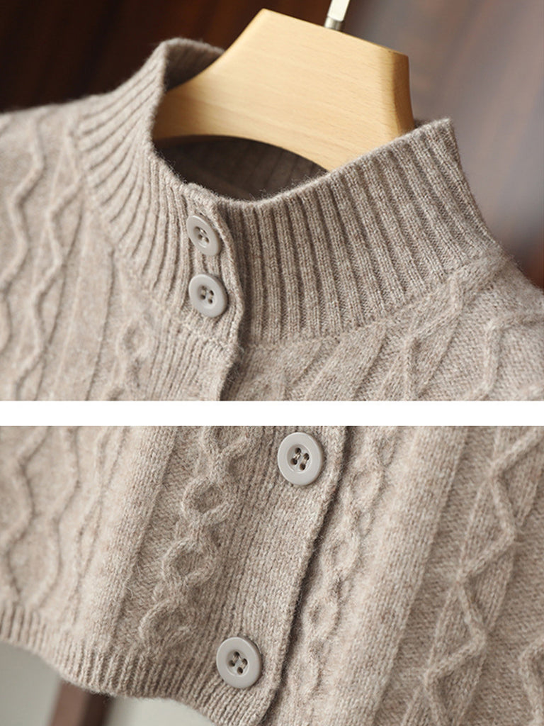 Women Artsy Solid Twrist Knit Wool Soft Stand Collar Shawl