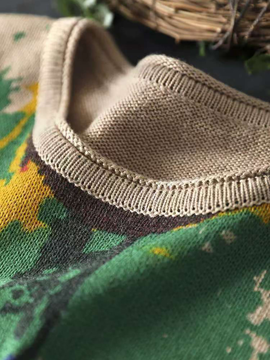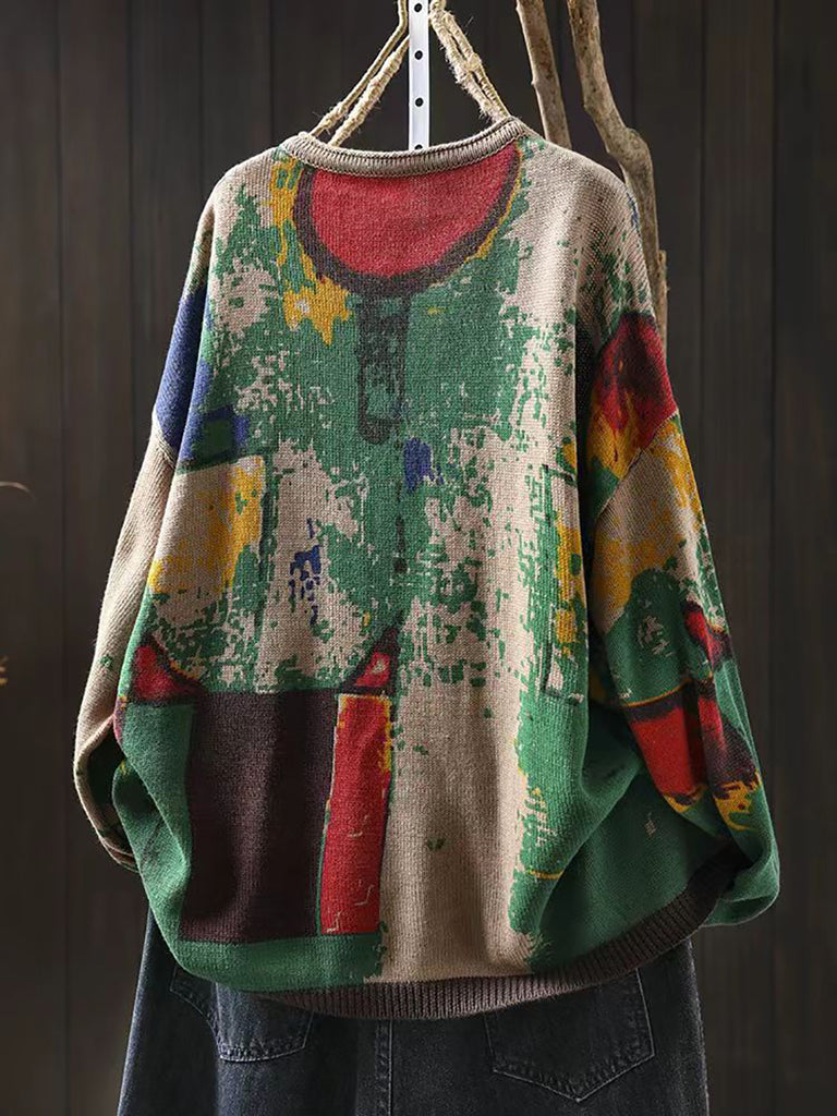 Women Autumn Casual Colorblock Knit O-Neck Sweater