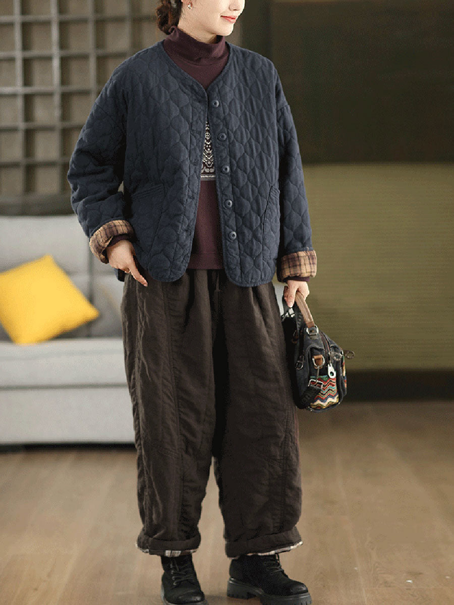 Plus Size Women Autumn Pure Color Linen Padded Straight Pants