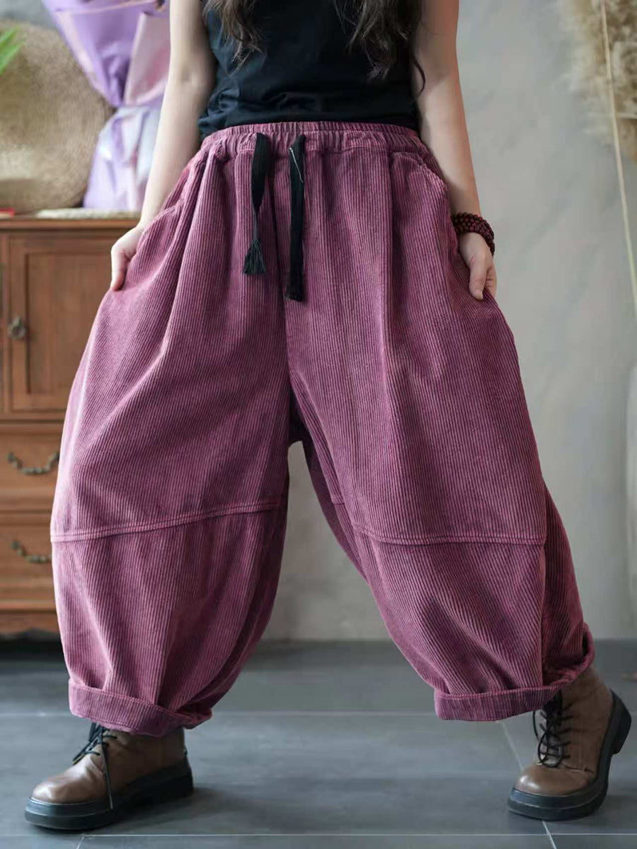Plus Size Women Autumn Pure Color Spliced Corduroy Harem Pants