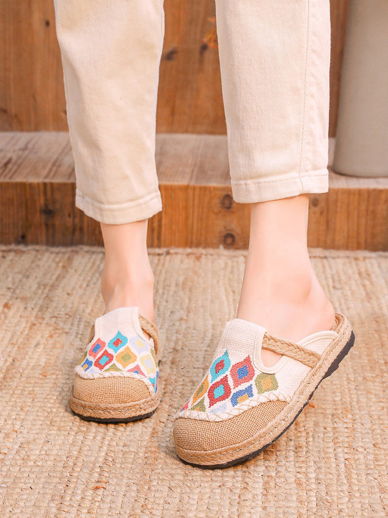 Women Ethnic Colorblock Cotton Linen Flat Slippers