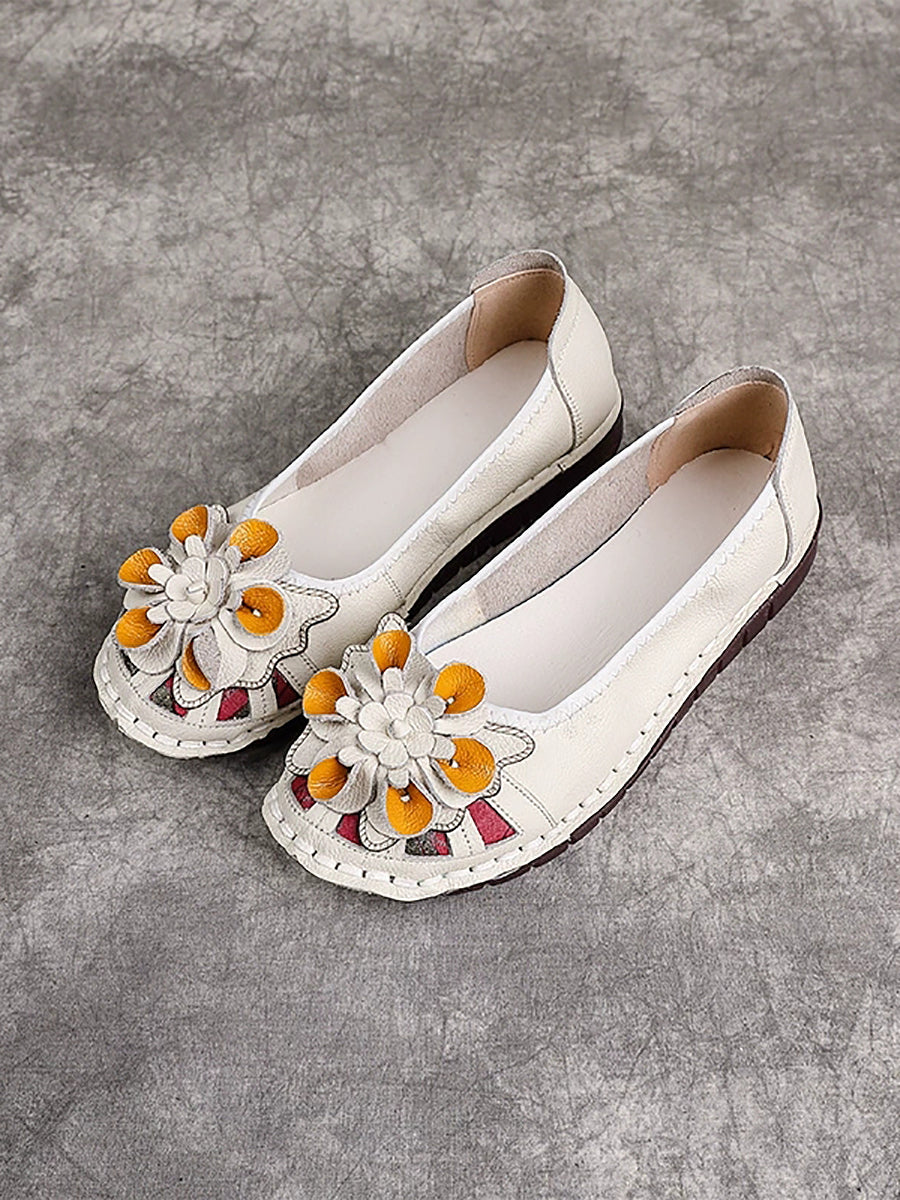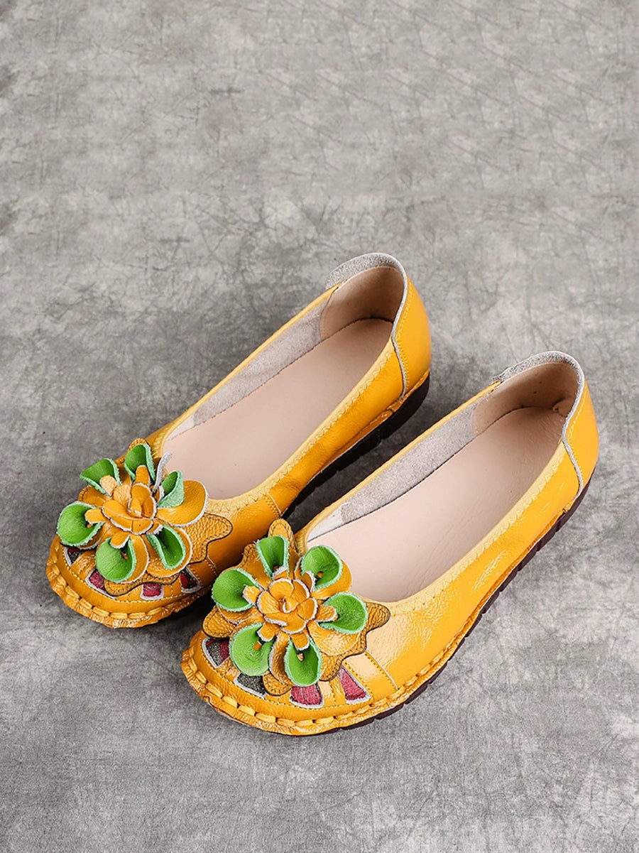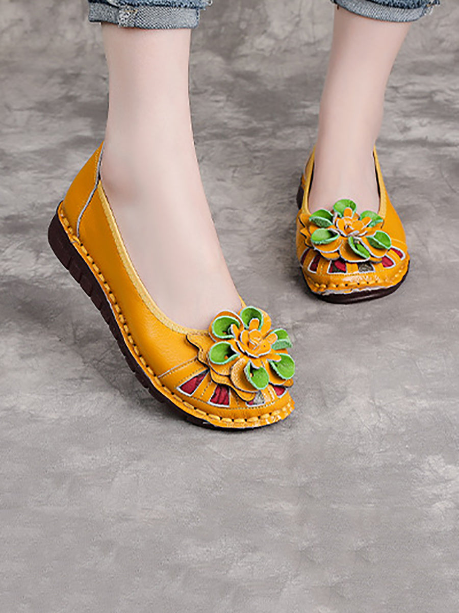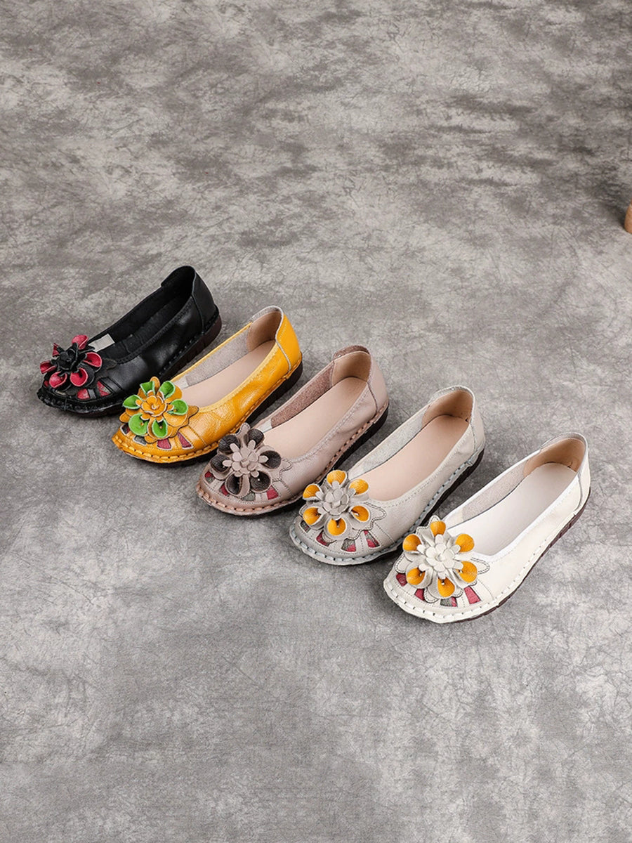Women Ethnic Genuine Leather Flower Low Heel Shoes