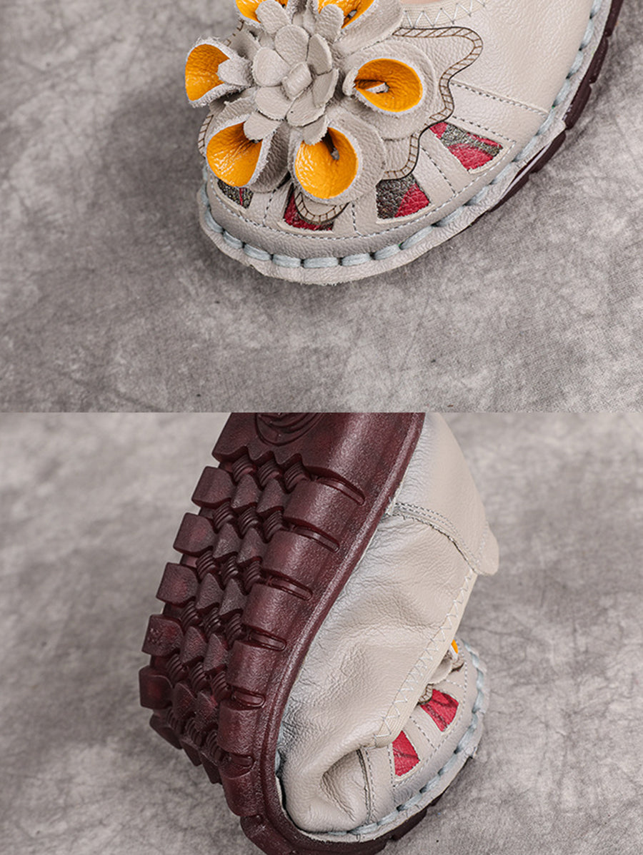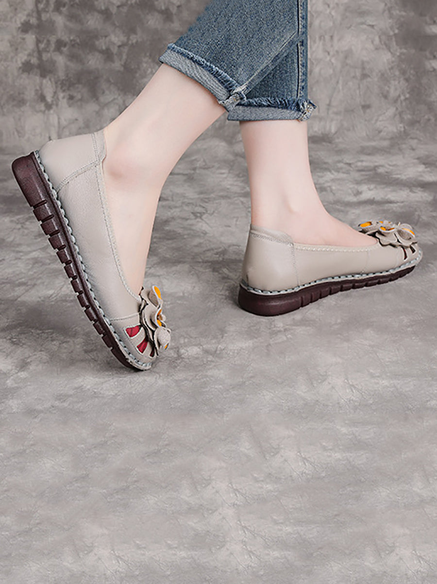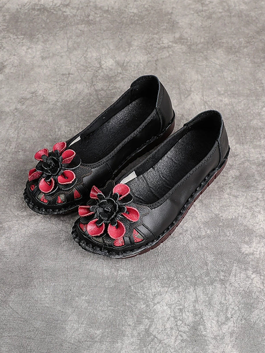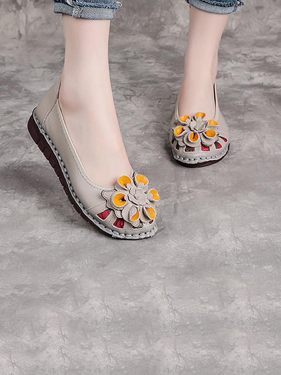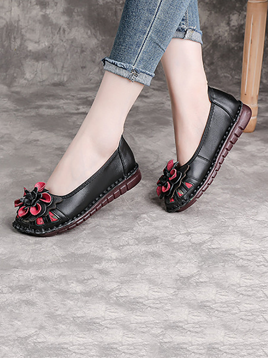 Women Ethnic Genuine Leather Flower Low Heel Shoes