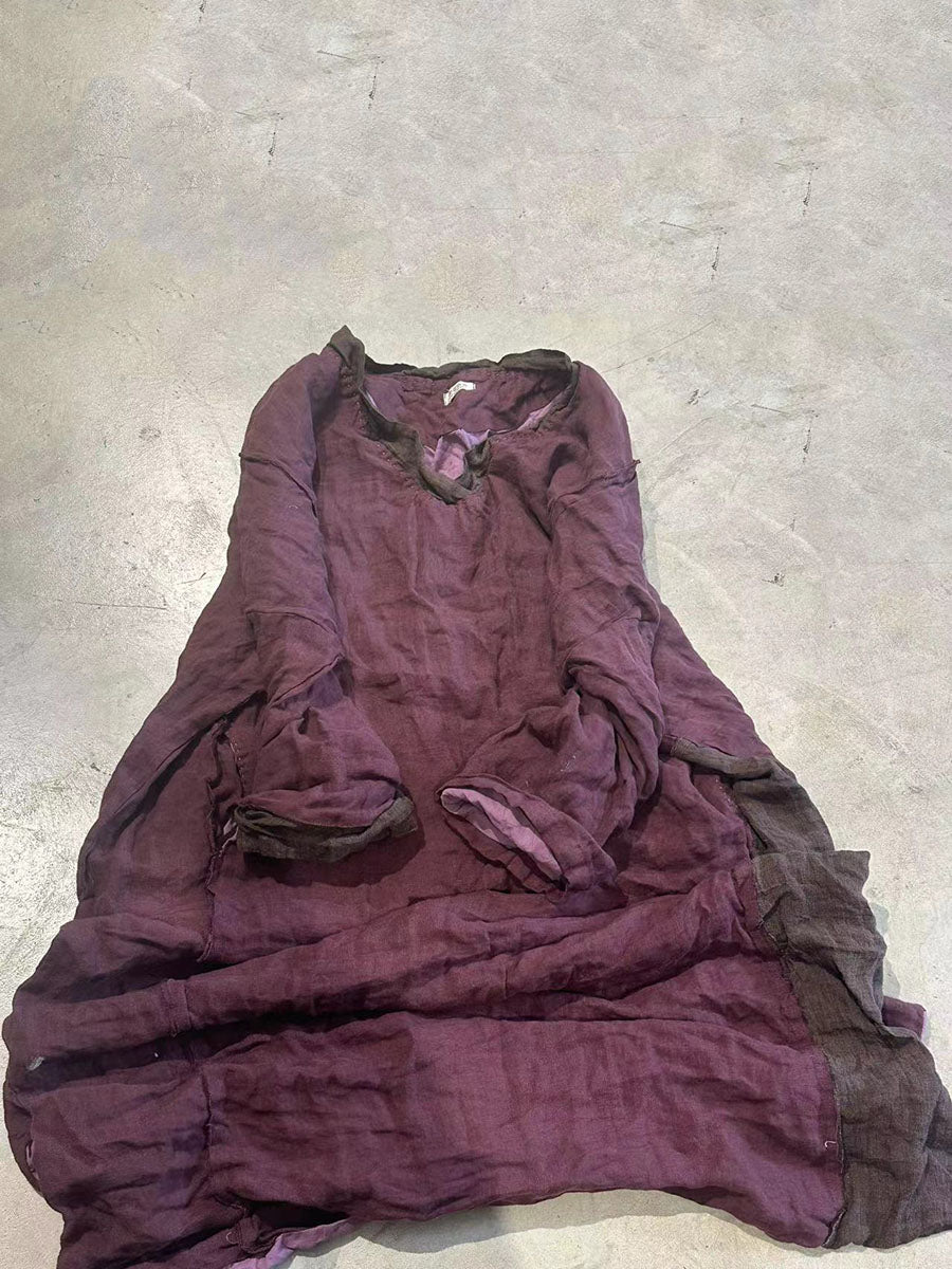 This Women Retro Autumn Colorblock Linen Robe Dress features a V-neck collar, raglan sleeves, and full sleeves, making it perfect for the spring and autumn seasons. The colorblock pattern adds a touch of retro style to this dress.
