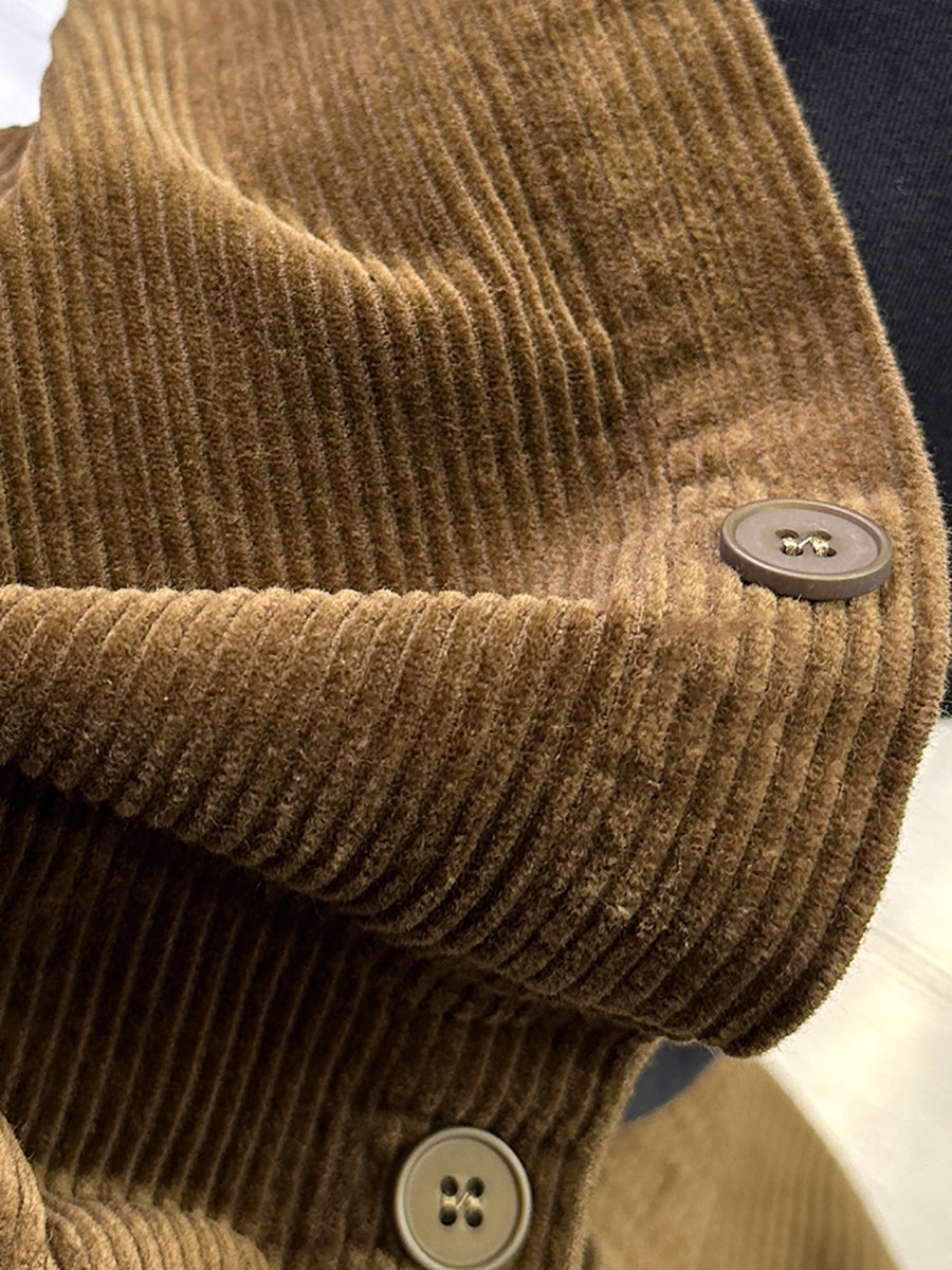 Plus Size Women Retro Autumn Pure Color Hooded Corduroy Coat