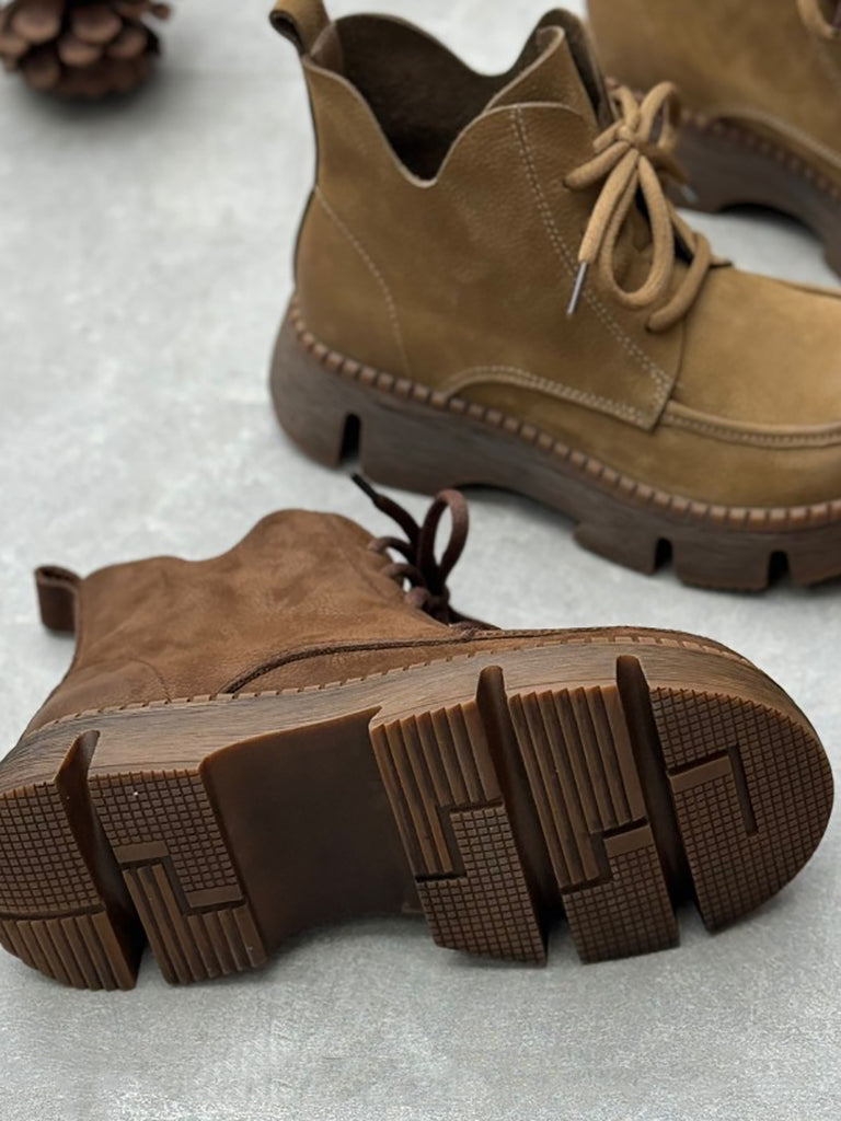 Women Retro Genuine Leather Platfrom Ankle Boots