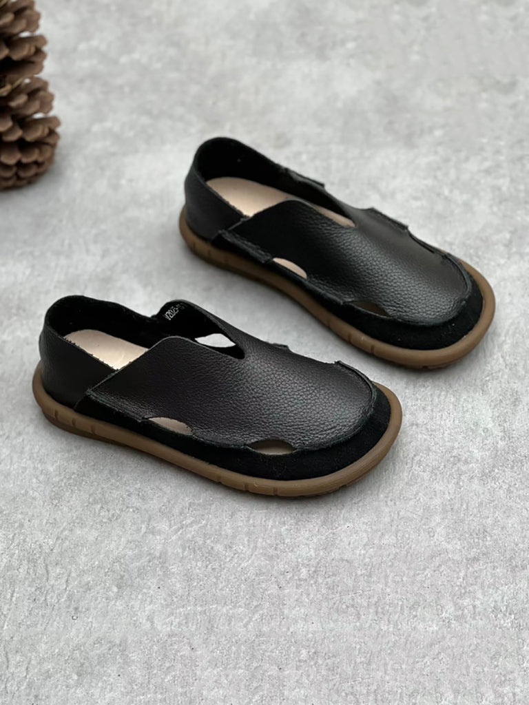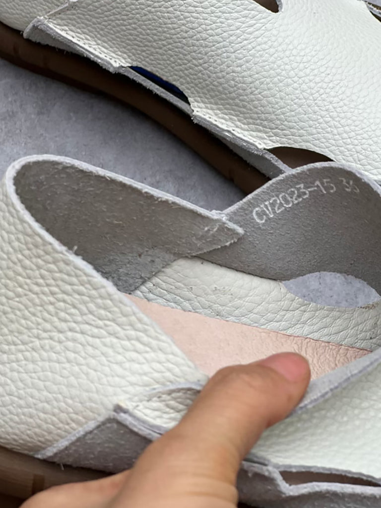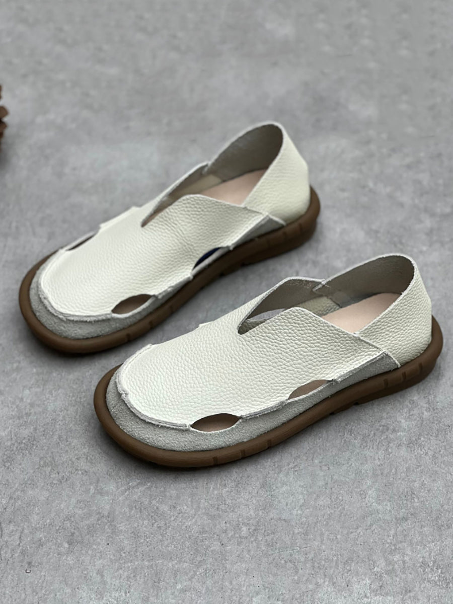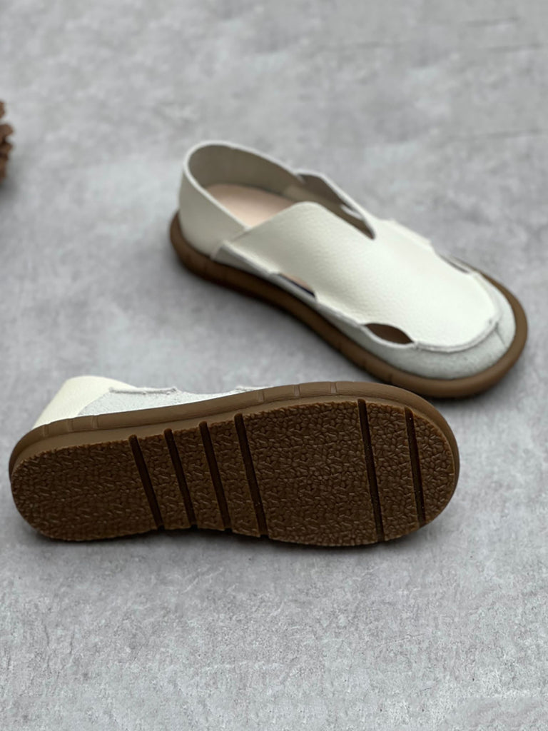Women Retro Summer Solid Leather Hollow Out Flat Shoes