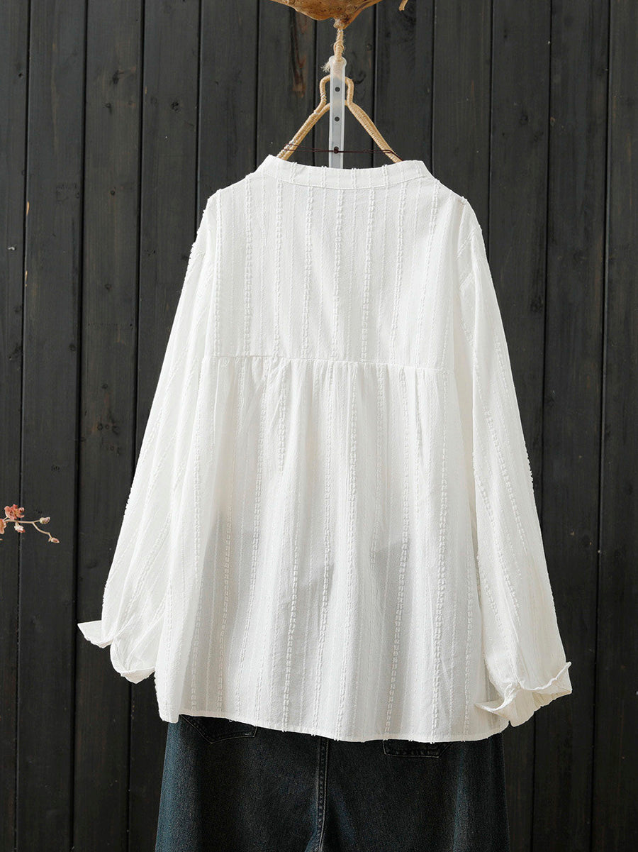 Women Spring Artsy Pure Color 100%Cotton Shirt
