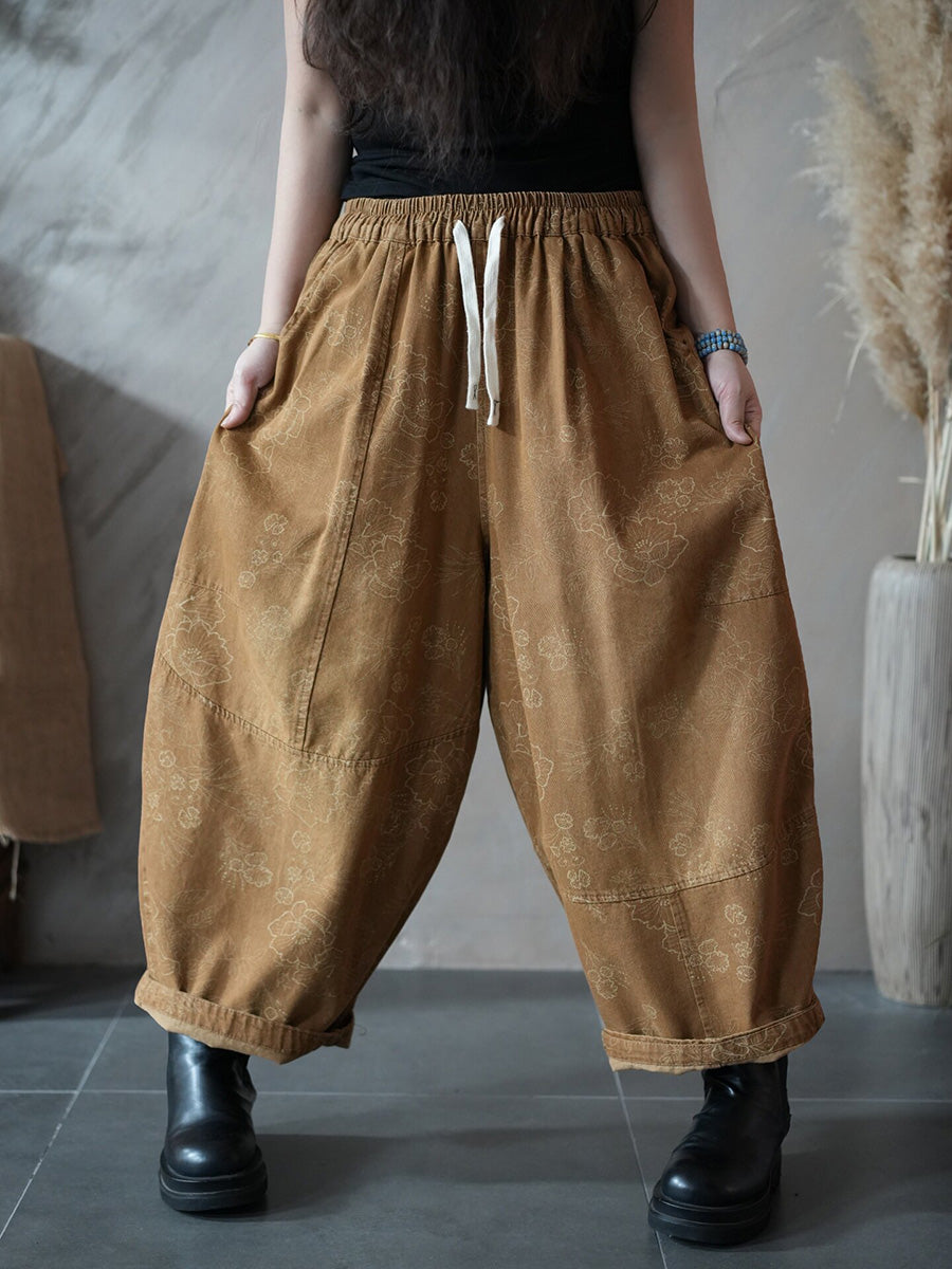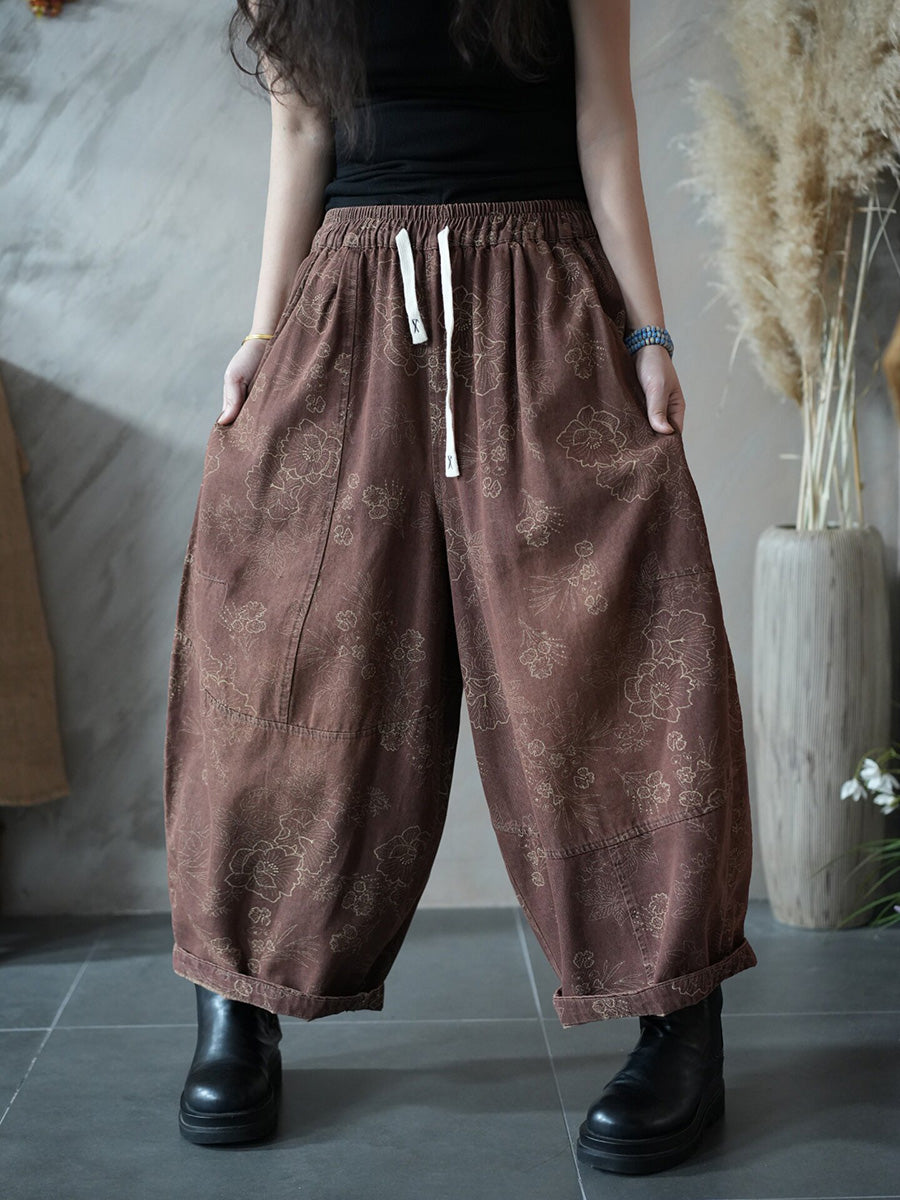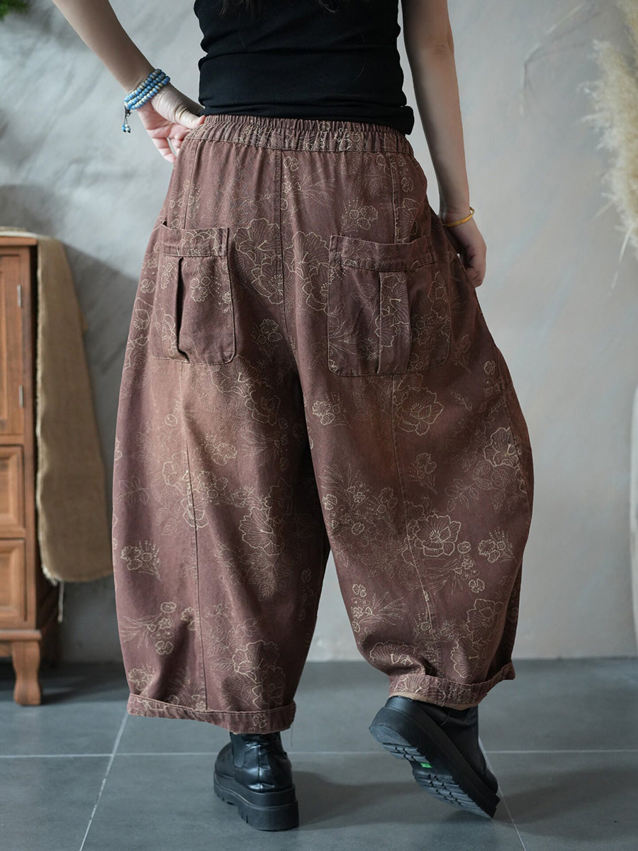 Women Spring Retro Flower Harem Pants