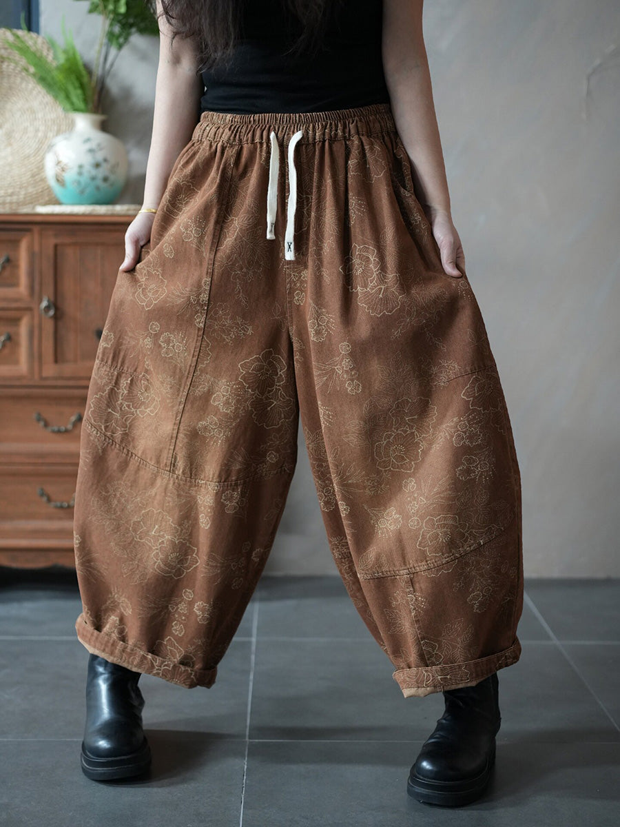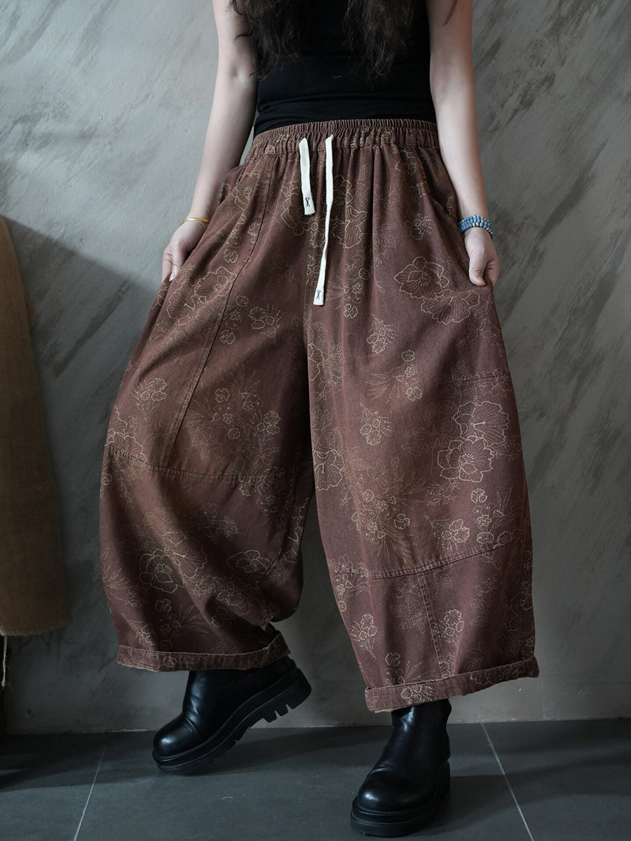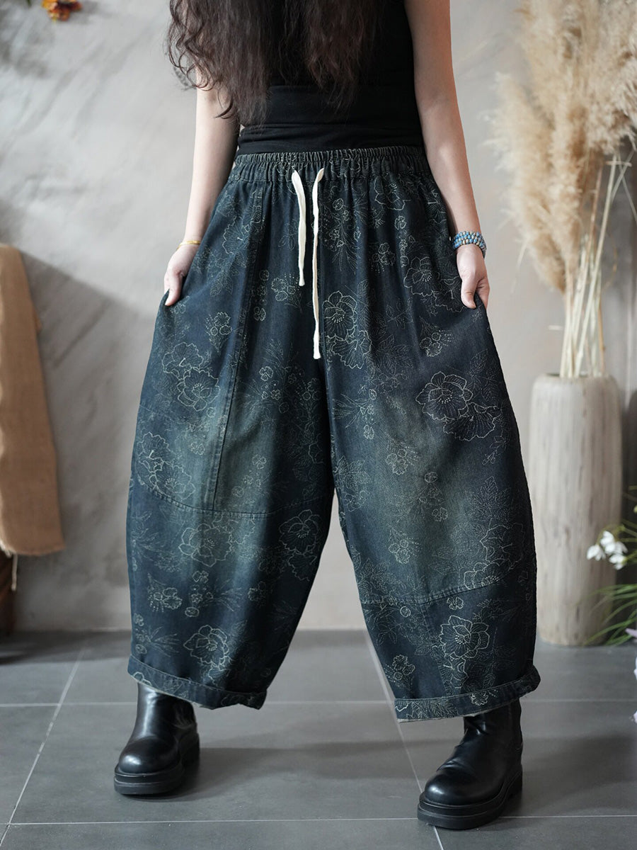 Women Spring Retro Flower Harem Pants