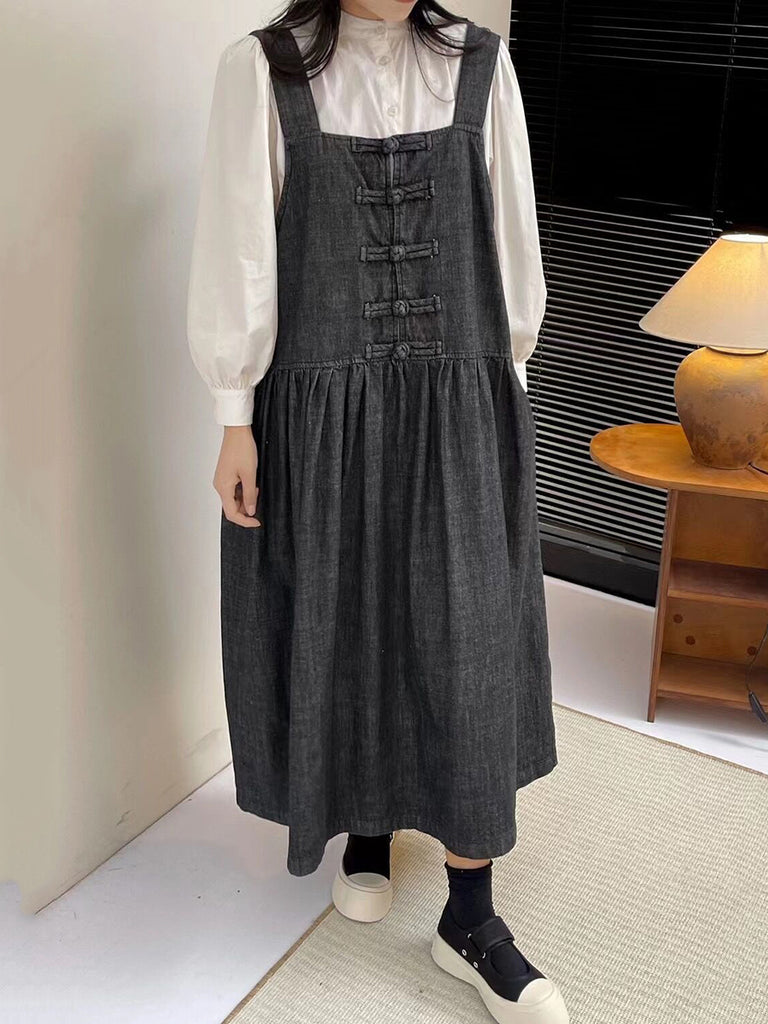 The Women Spring Vintage Buckle Denim Vest Dress is a must-have for any fashion-forward individual. With a solid pattern and calf-length design, this dress is both stylish and versatile. The square collar adds a unique touch, and the included buckle allows for a customizable fit. Perfect for the summer and spring seasons.