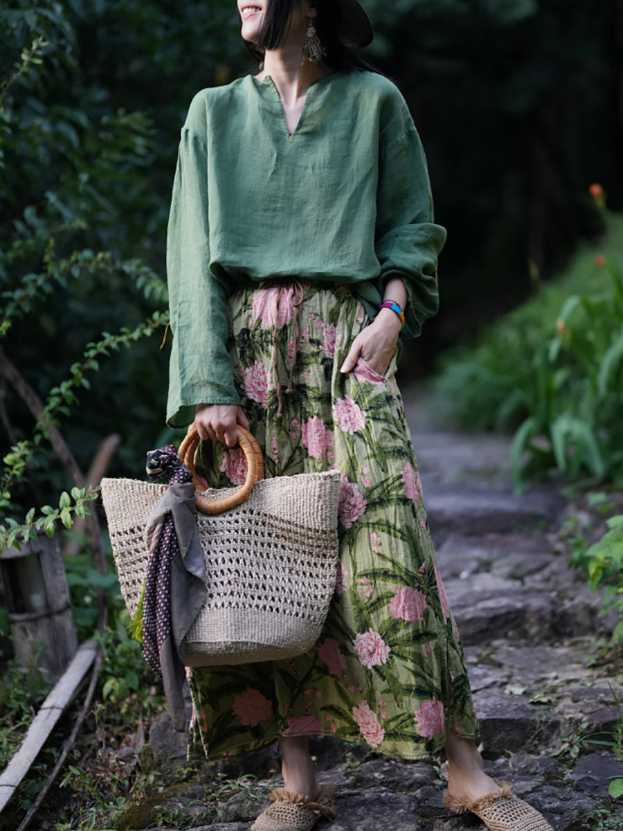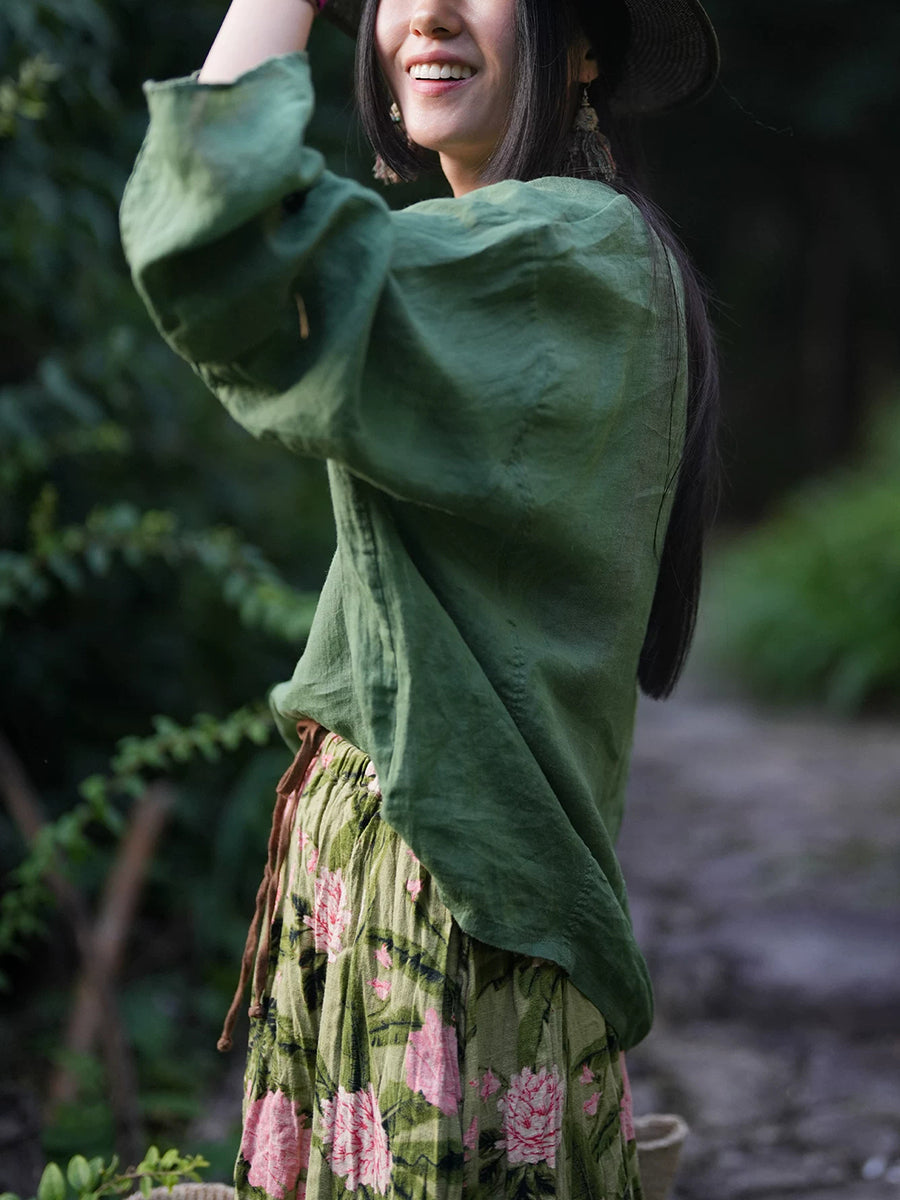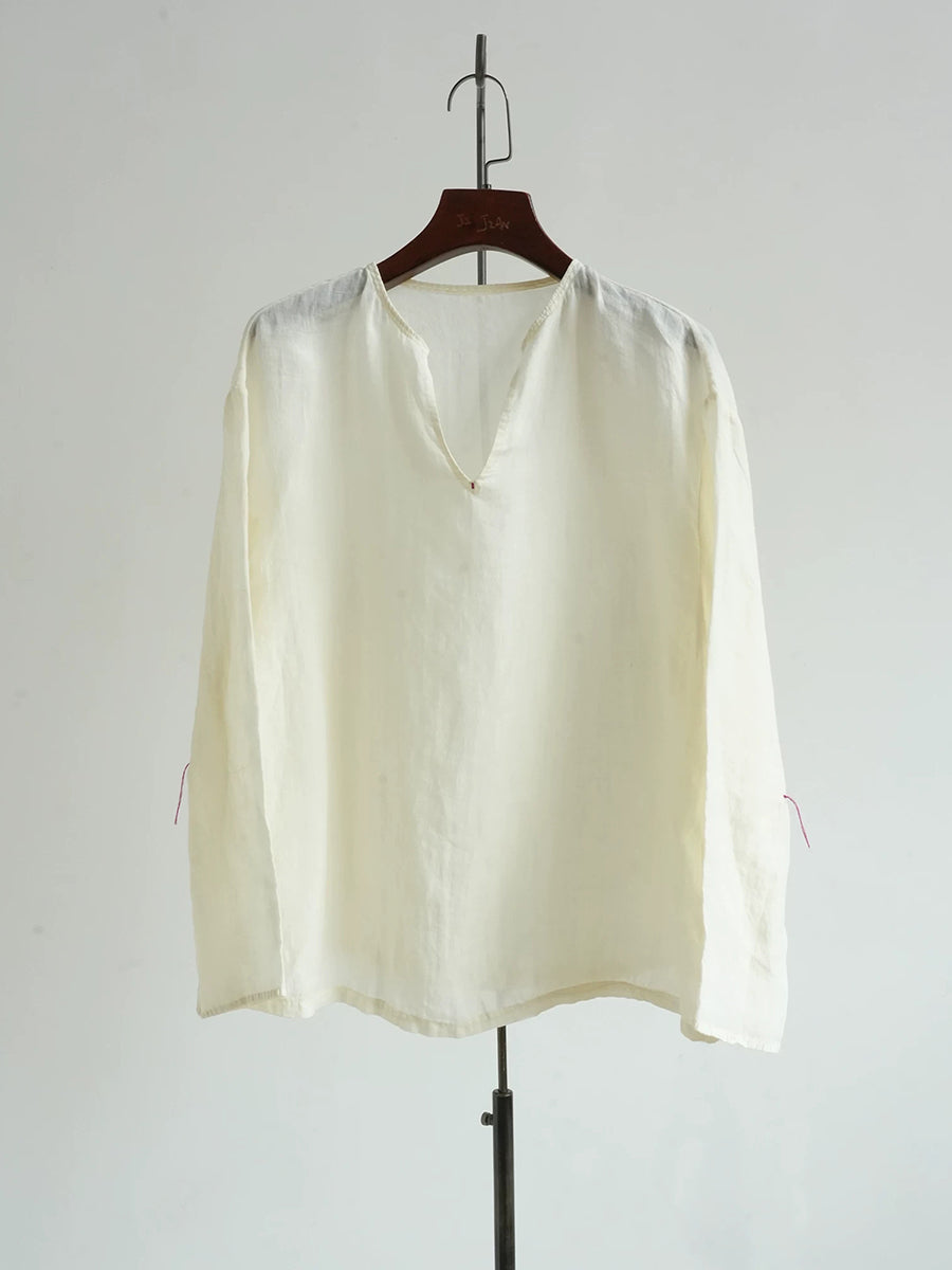 Women Summer Casual Pure Color 100%Ramie V-Neck Blouse