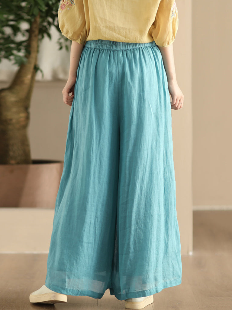 Women Summer Dual-layer Wide-leg Ramie Pants