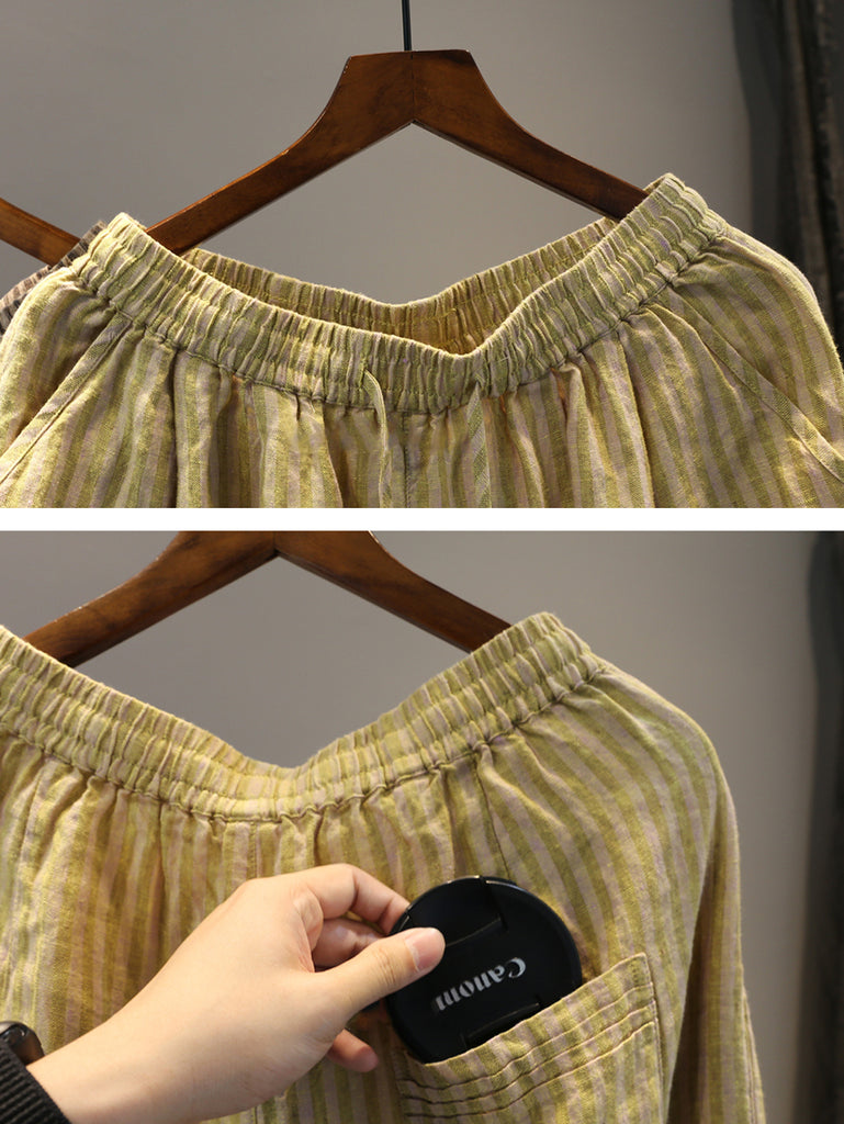 Crafted from 100% linen, these stylish Women's Summer Stripe Straight Pants have an elastic waist for comfortable wear. The vintage style adds a touch of sophistication to your summer wardrobe.