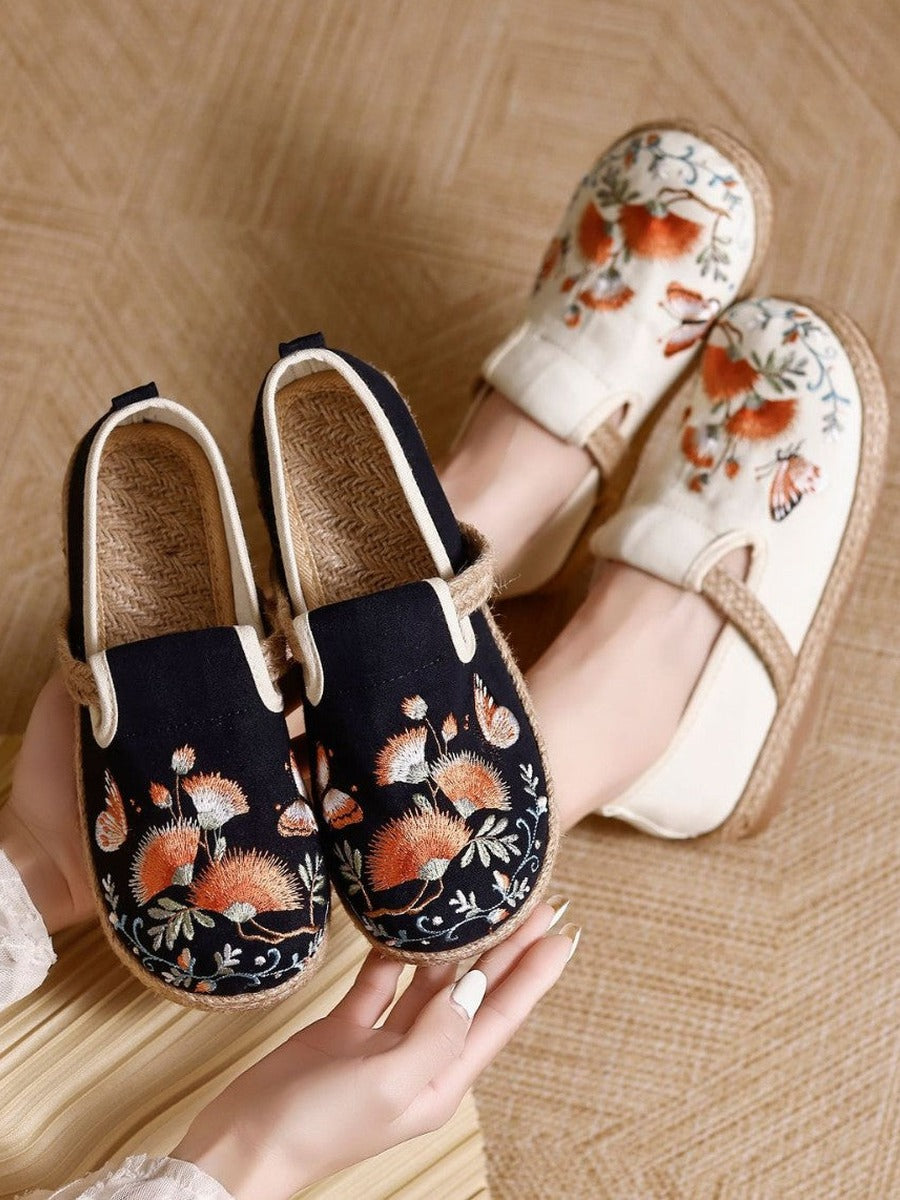 Handcrafted vintage cotton linen footwear with artisan details. Comfortable and breathable for everyday wear.
