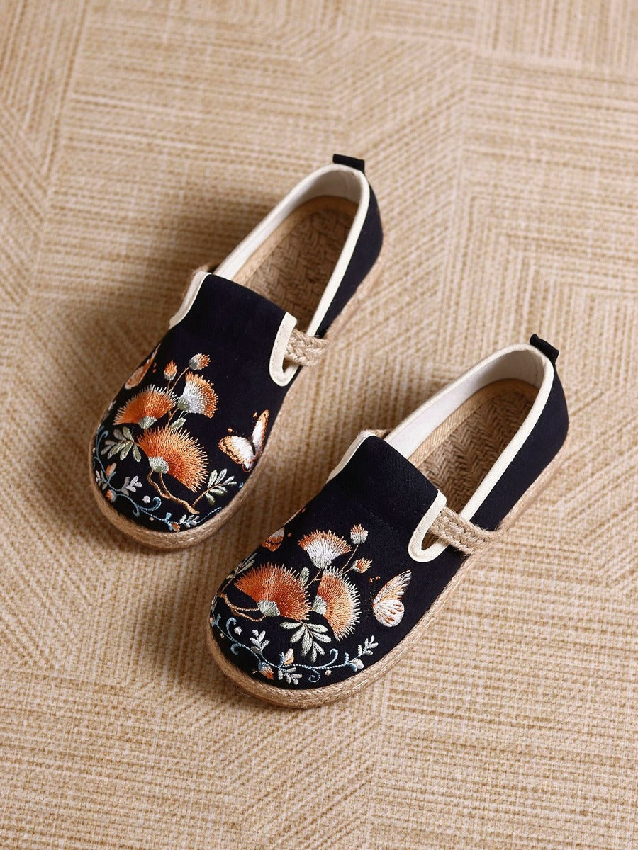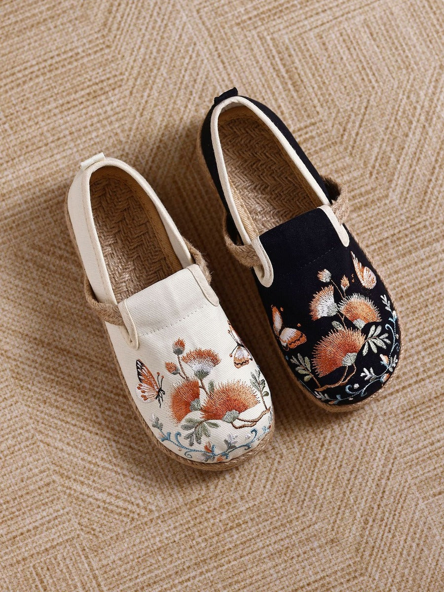 Women Vintage Ethnic Embroidered Cotton Linen Anti-Slip Flats