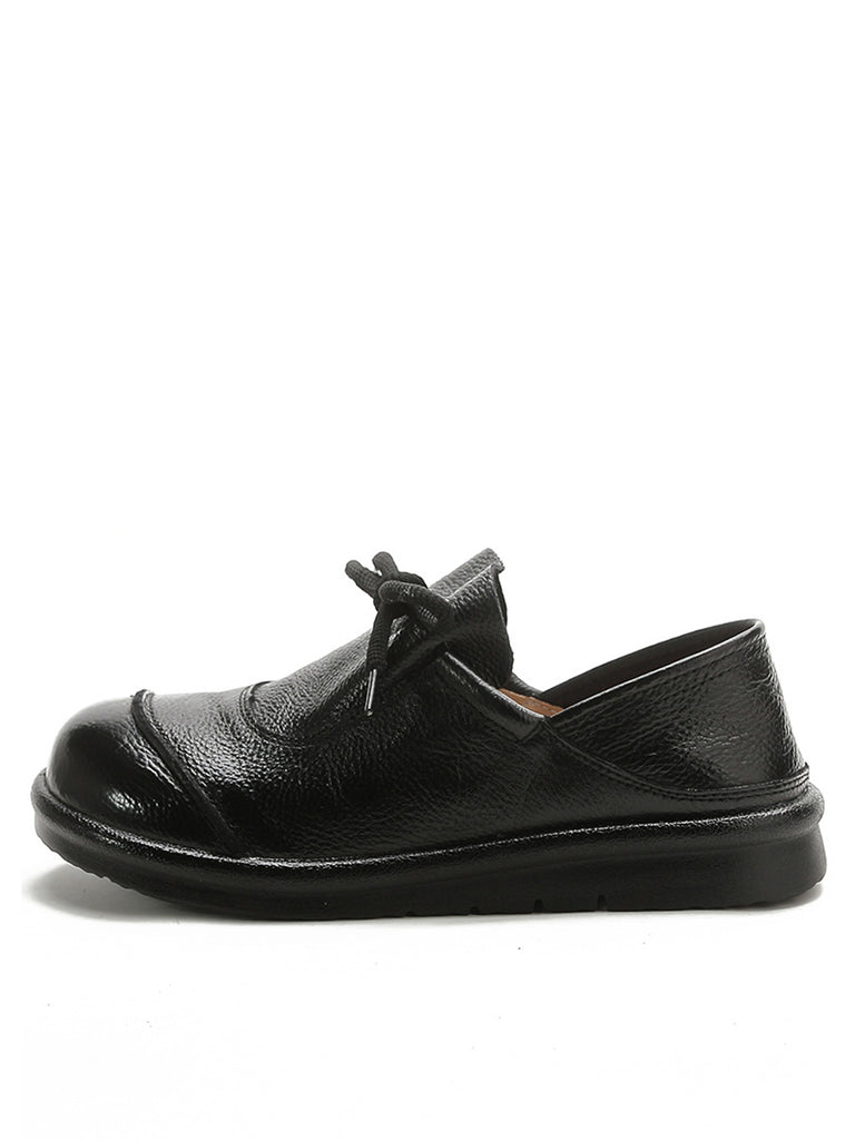 Women Vintage Leather Drawstring Flat Shoes