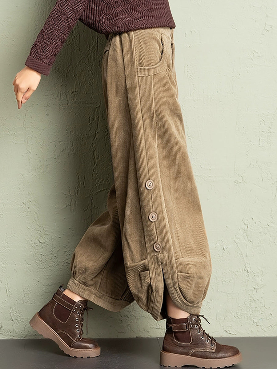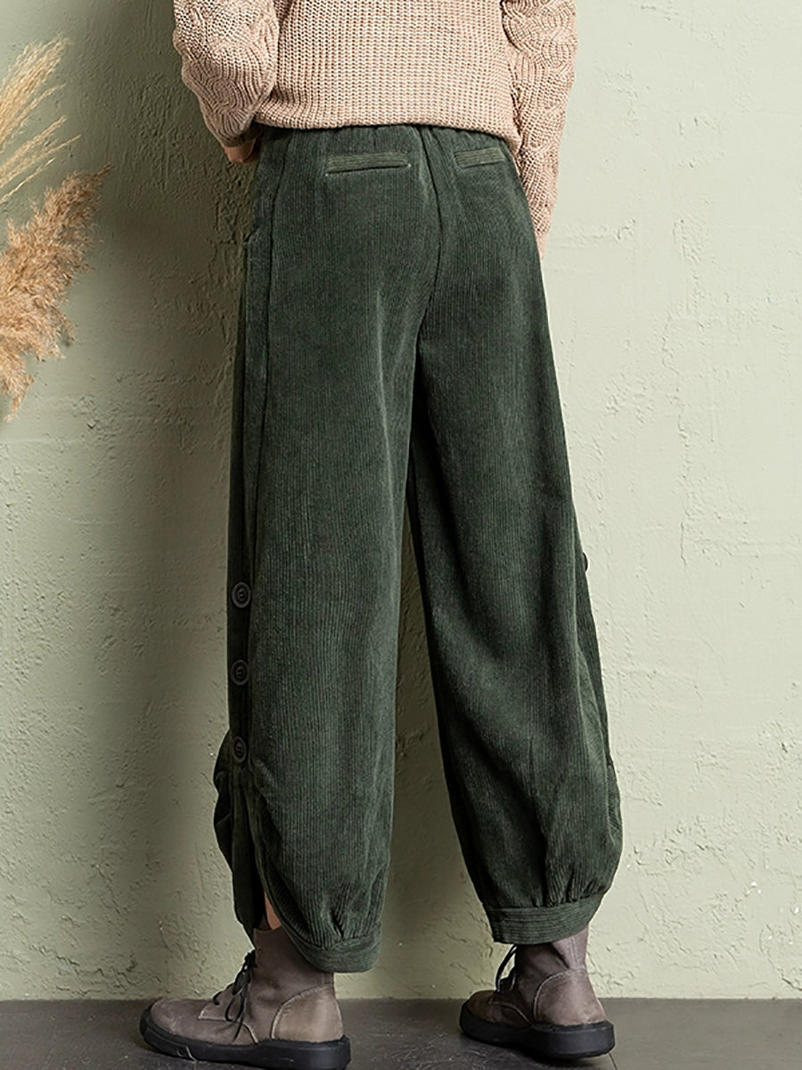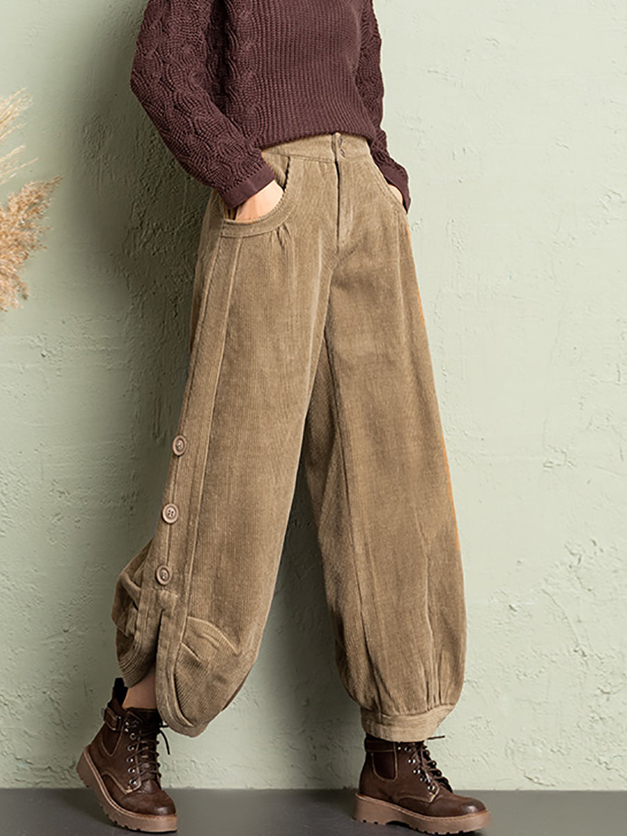 Plus Size Women Winter Casual Pure Color Corduroy Bloomers