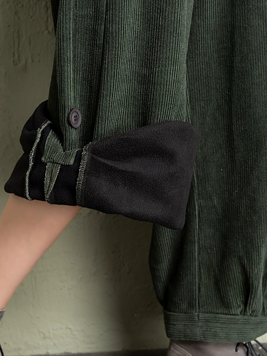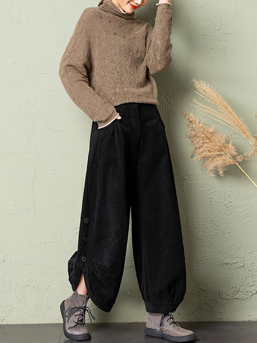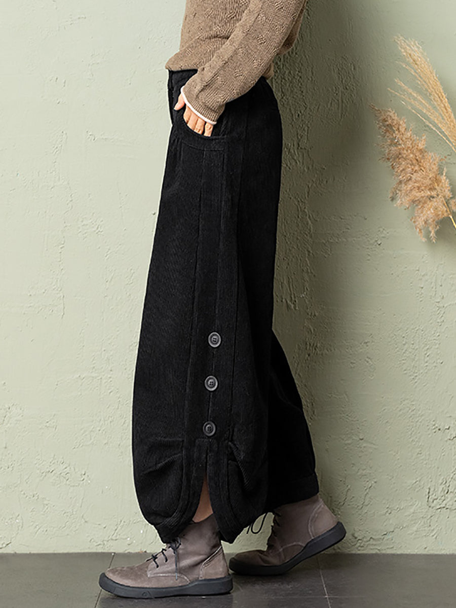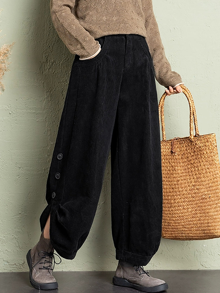 Plus Size Women Winter Casual Pure Color Corduroy Bloomers