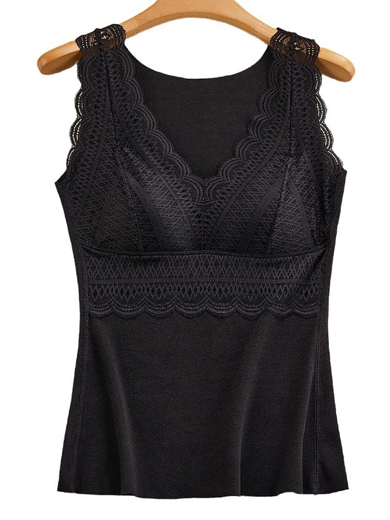 Women Winter Pure Color V-Neck Warm With Bra Pad Base