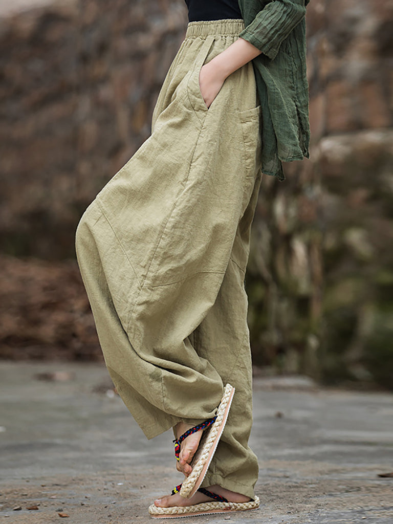 These retro-styled harem pants feature an elastic waist and a solid pattern. With a full length design and convenient pockets, they are perfect for colder seasons such as autumn and winter.