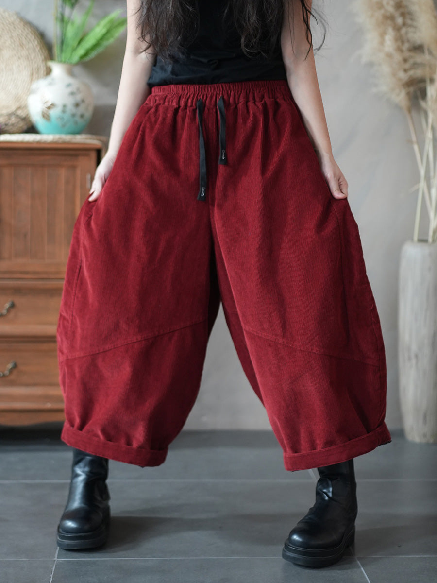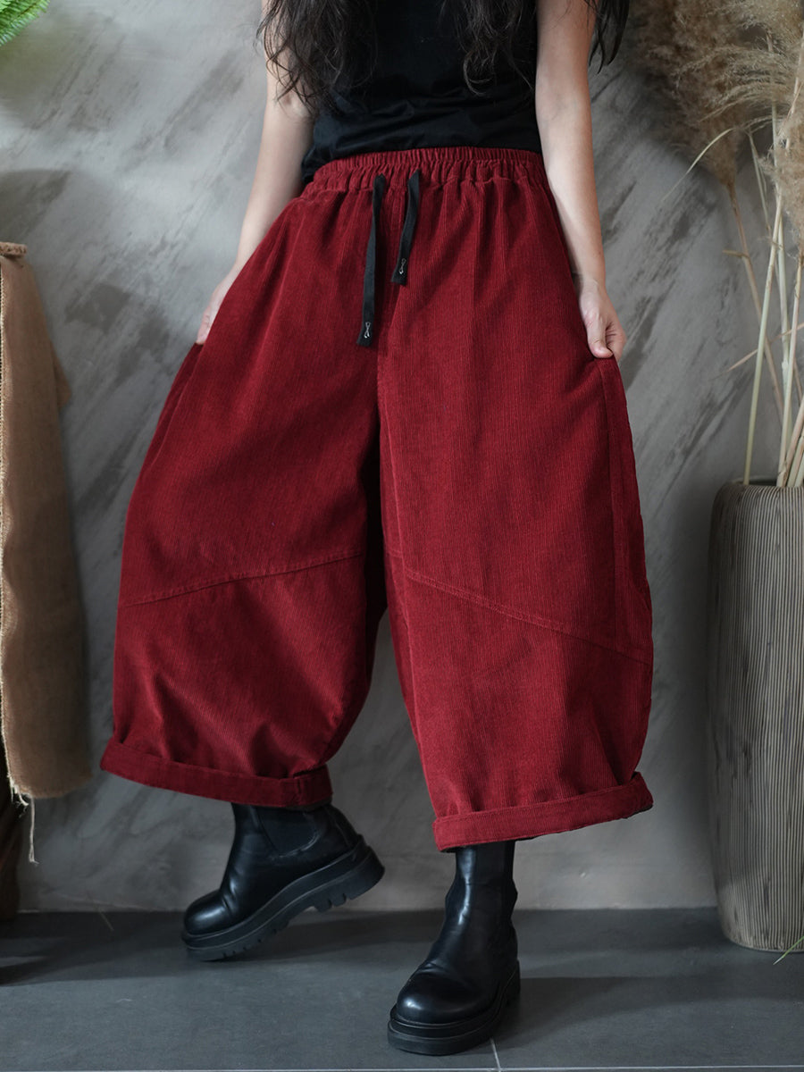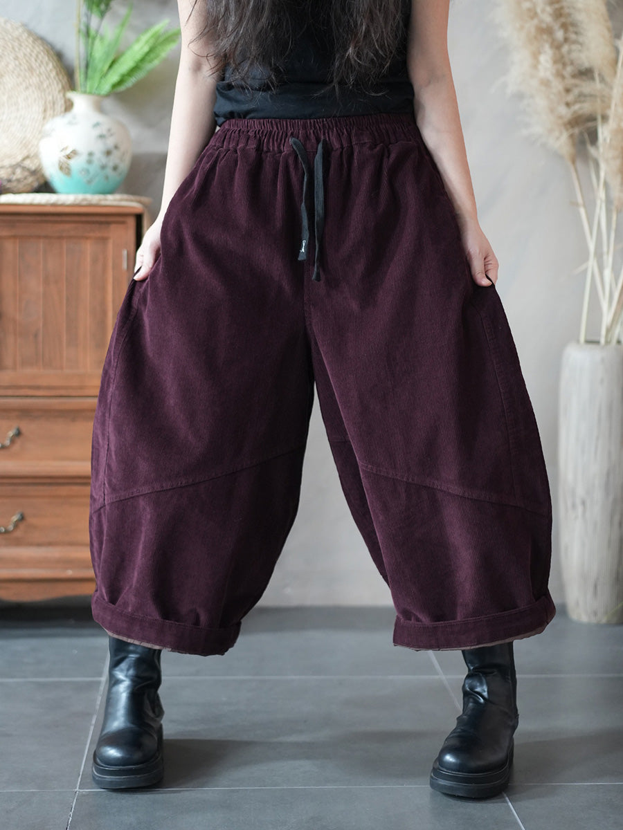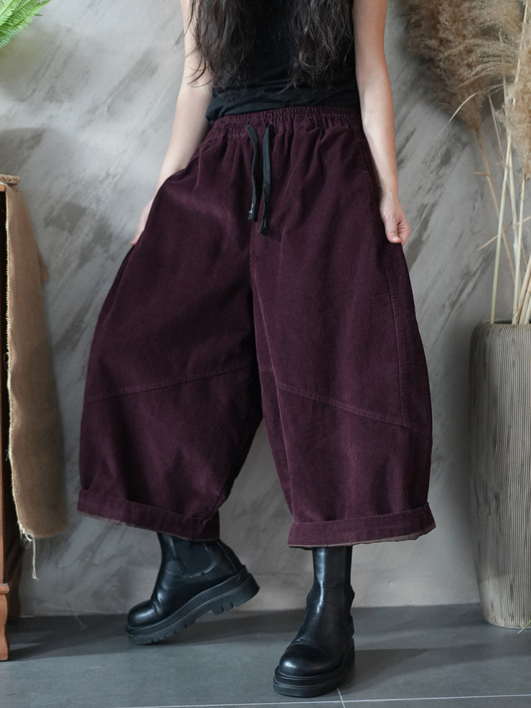 Women Winter Retro Pure Color Corduroy Wide-leg Pants