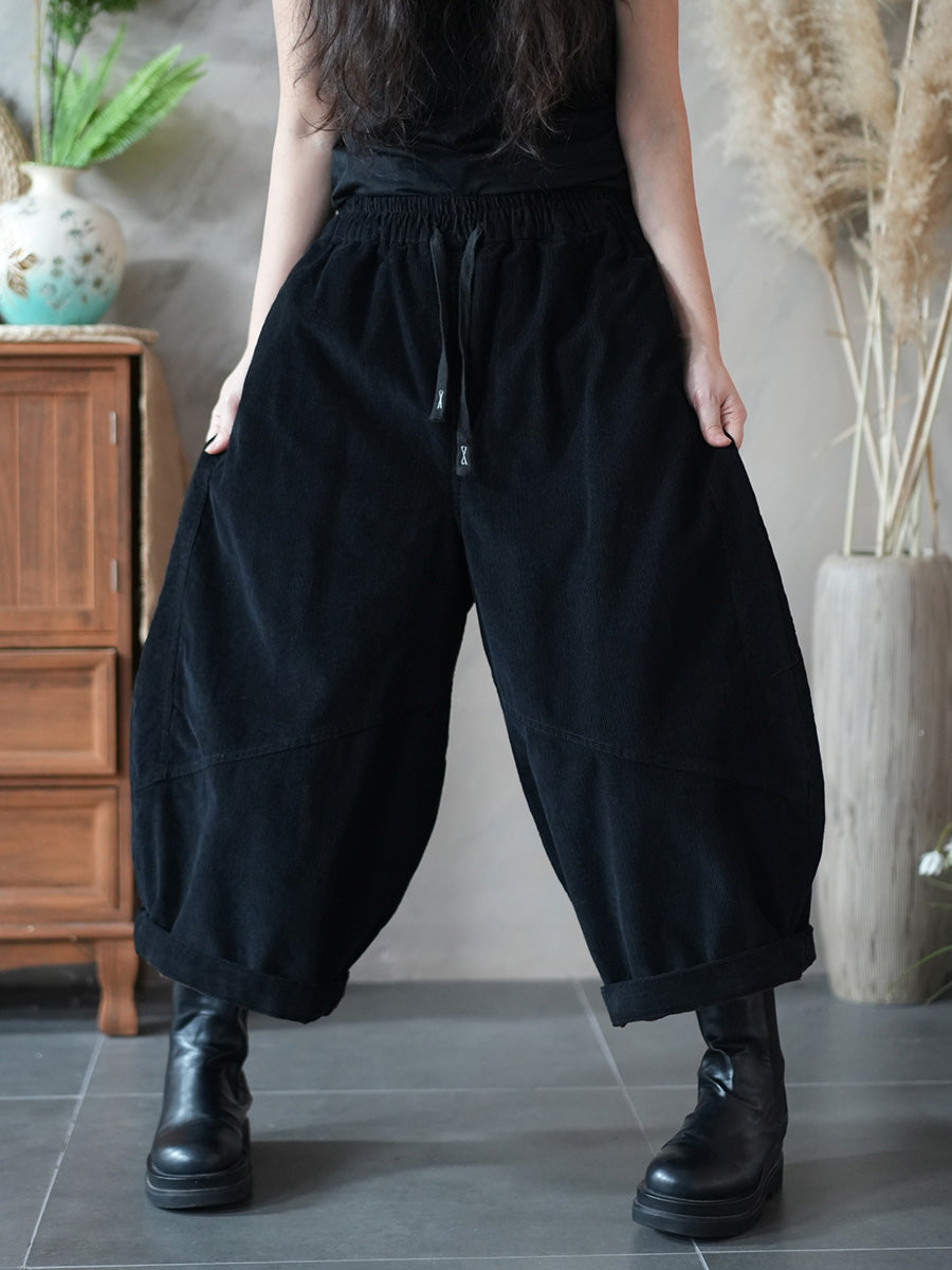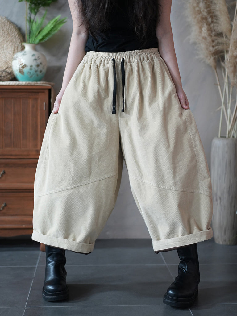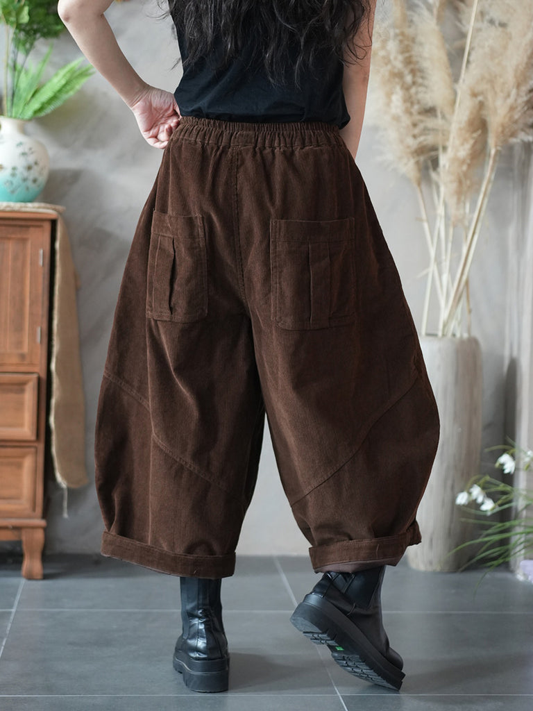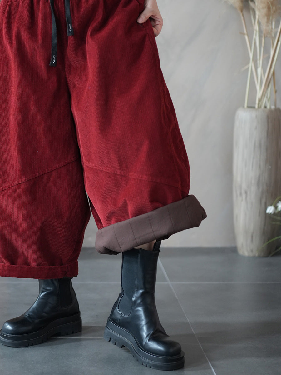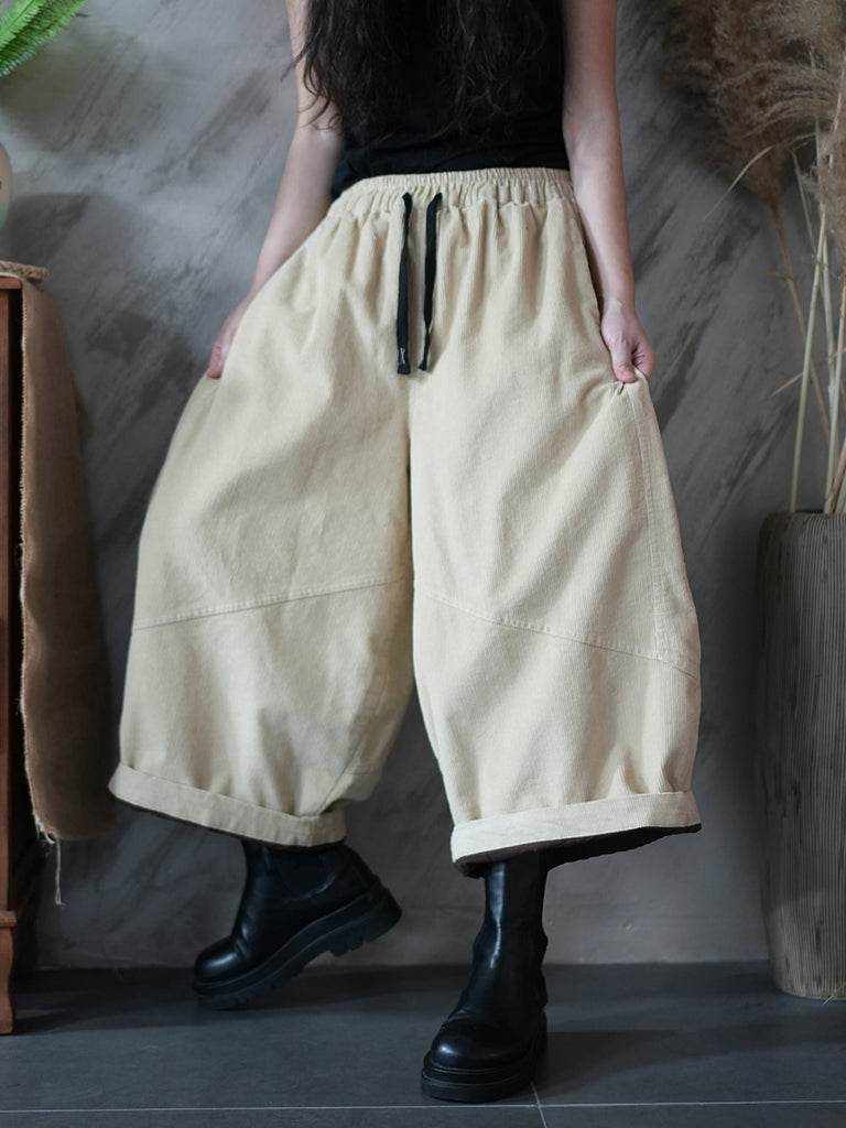 Women Winter Retro Pure Color Corduroy Wide-leg Pants