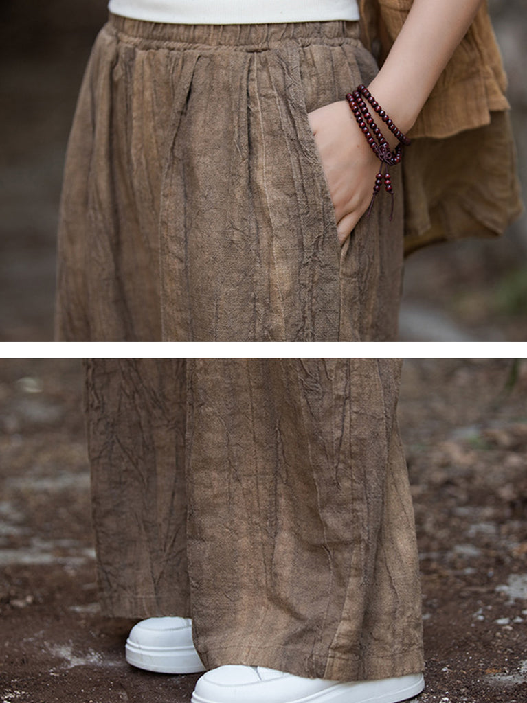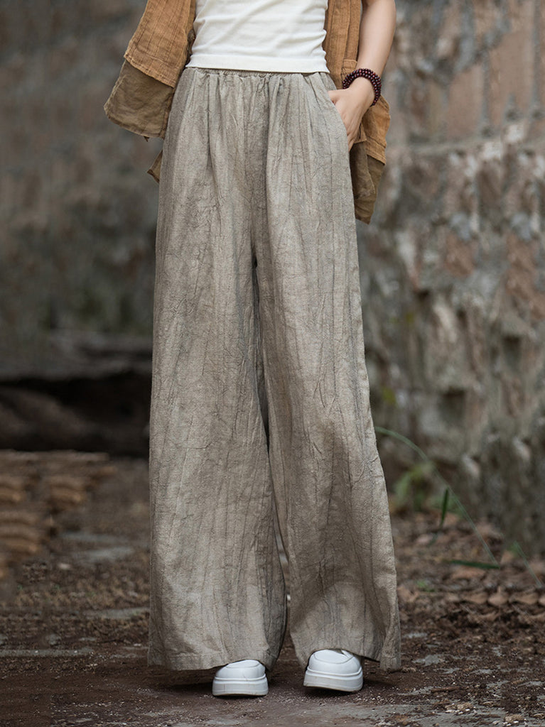 Constructed from a blend of Ramie and Cotton, these wide-leg pants feature a retro style and elastic waist for a comfortable fit. The pants are designed with a tie-dye pattern and have a full length, making them ideal for the autumn and winter seasons.