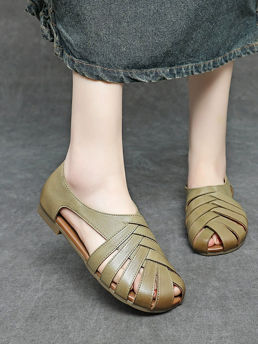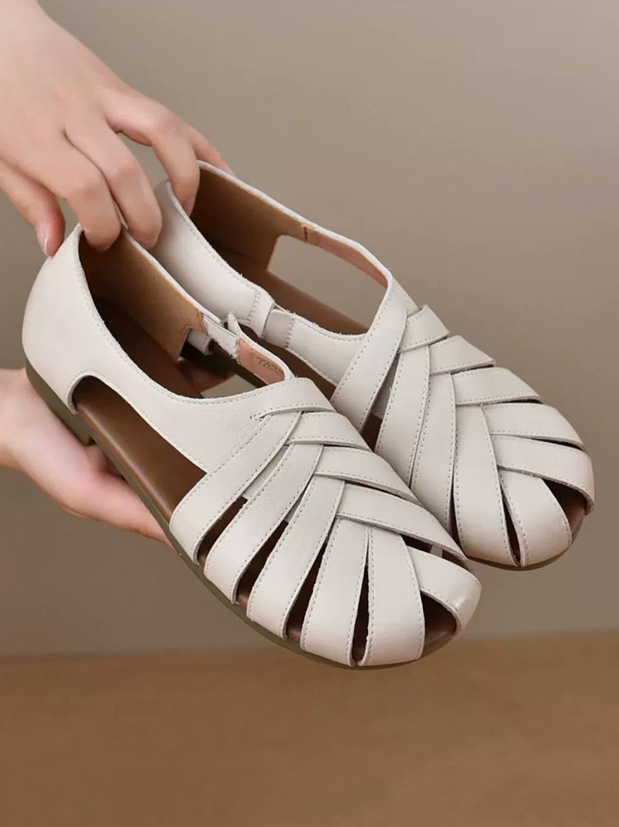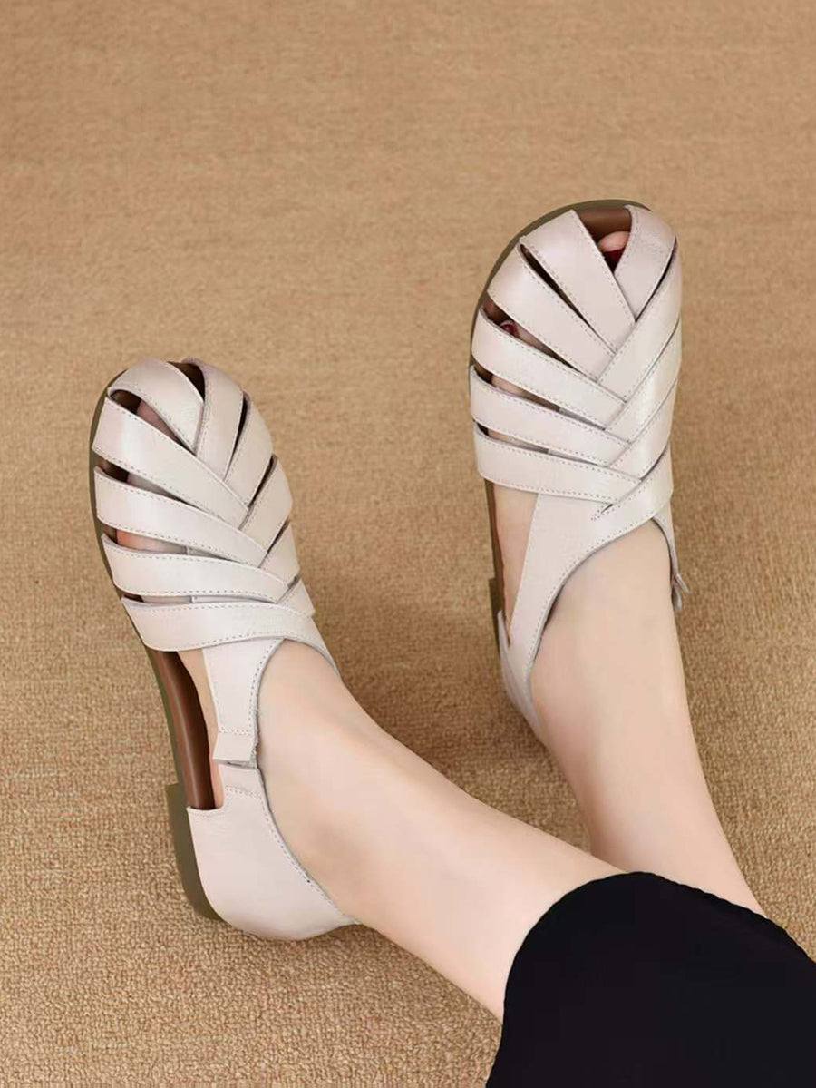 Sandálias femininas de verão em couro genuíno com detalhes em viés.