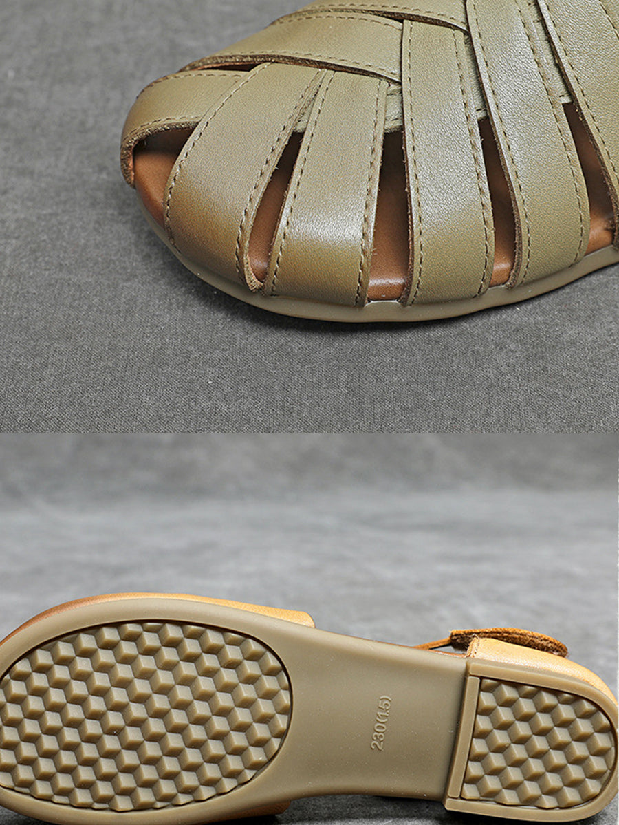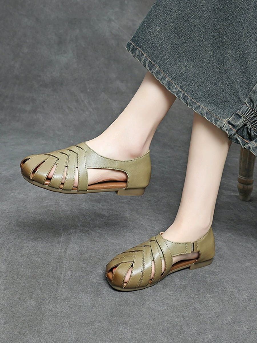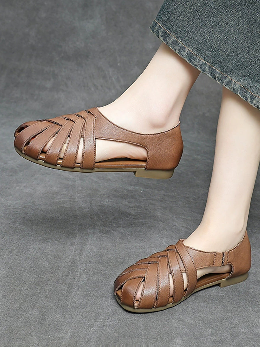 Sandálias femininas de verão em couro genuíno com detalhes em viés.