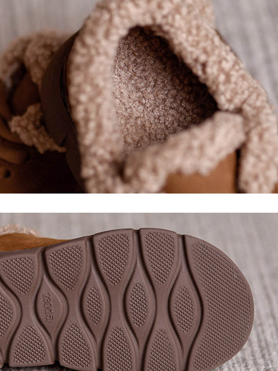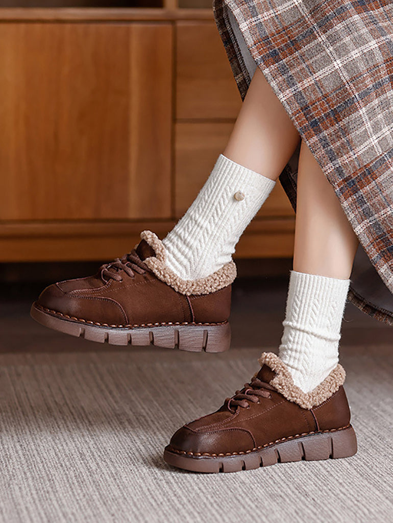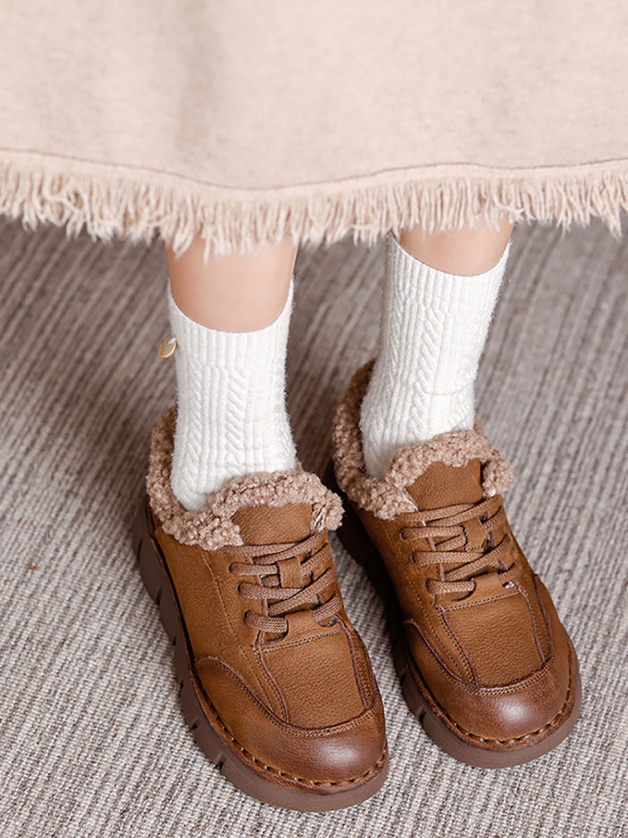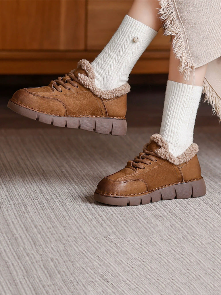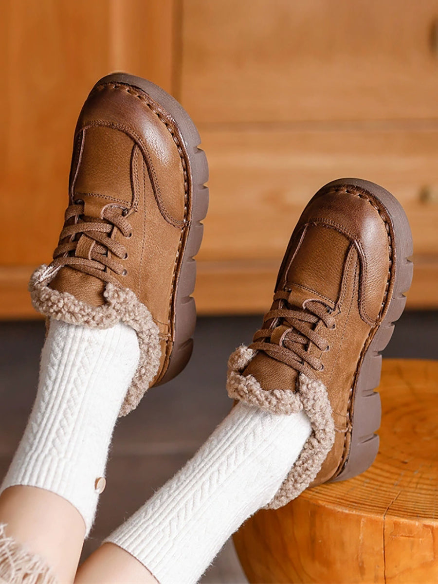 Sapatos de plataforma femininos de inverno em couro legítimo com forro de lã