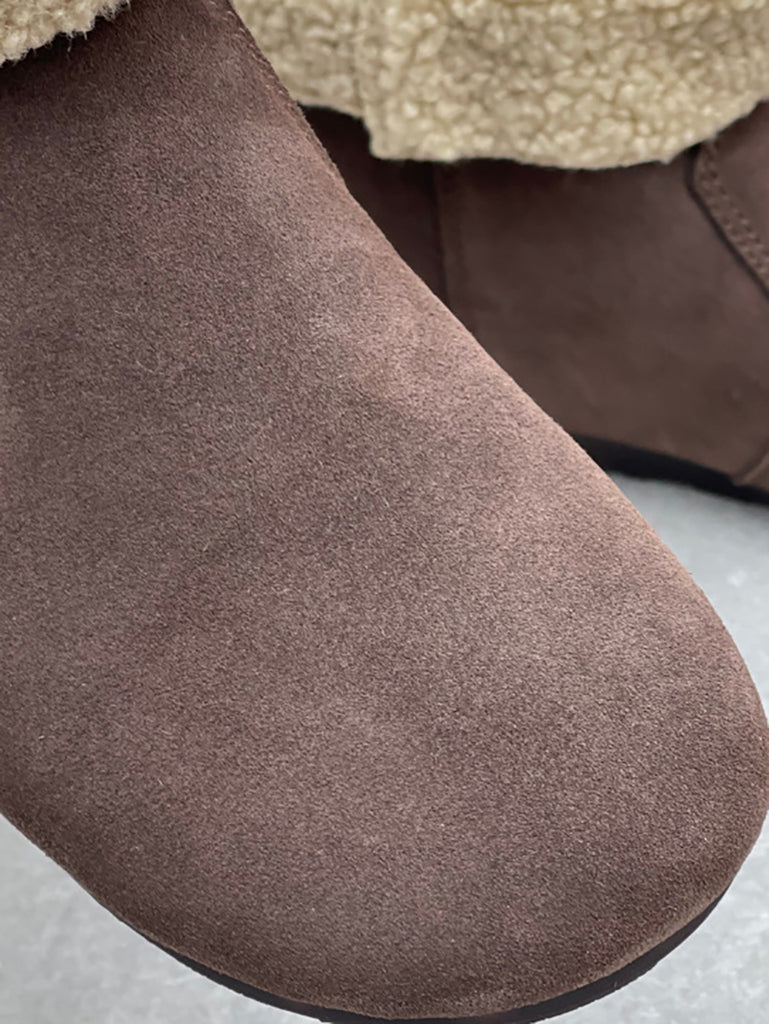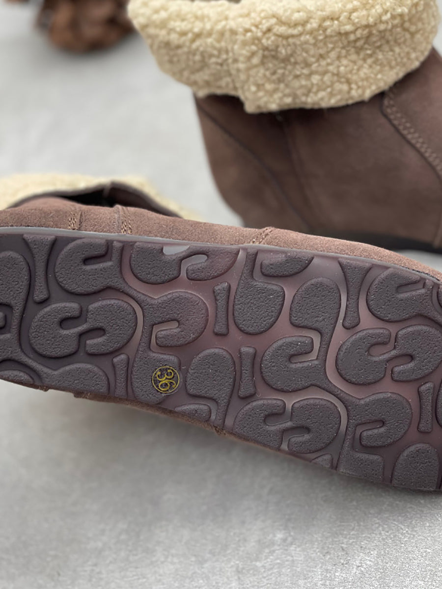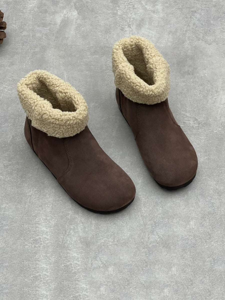 Botas de cano curto femininas de inverno em couro legítimo com forro de lã