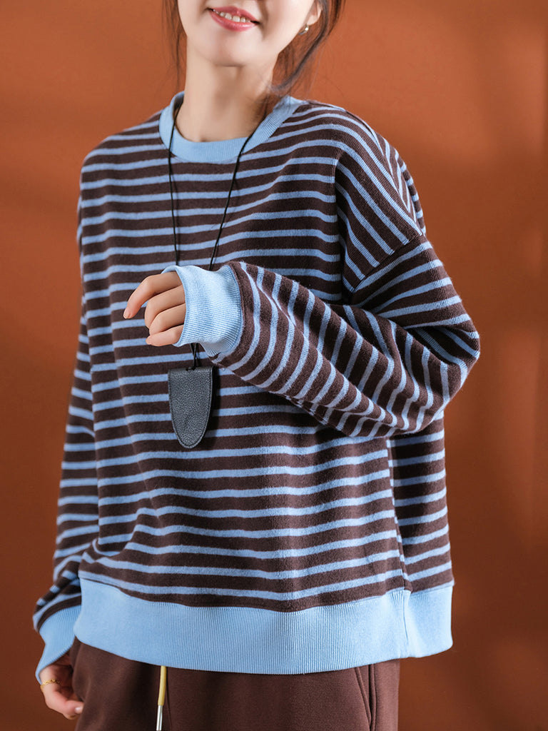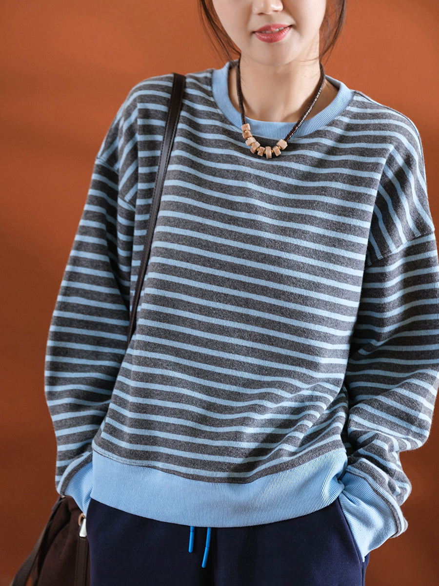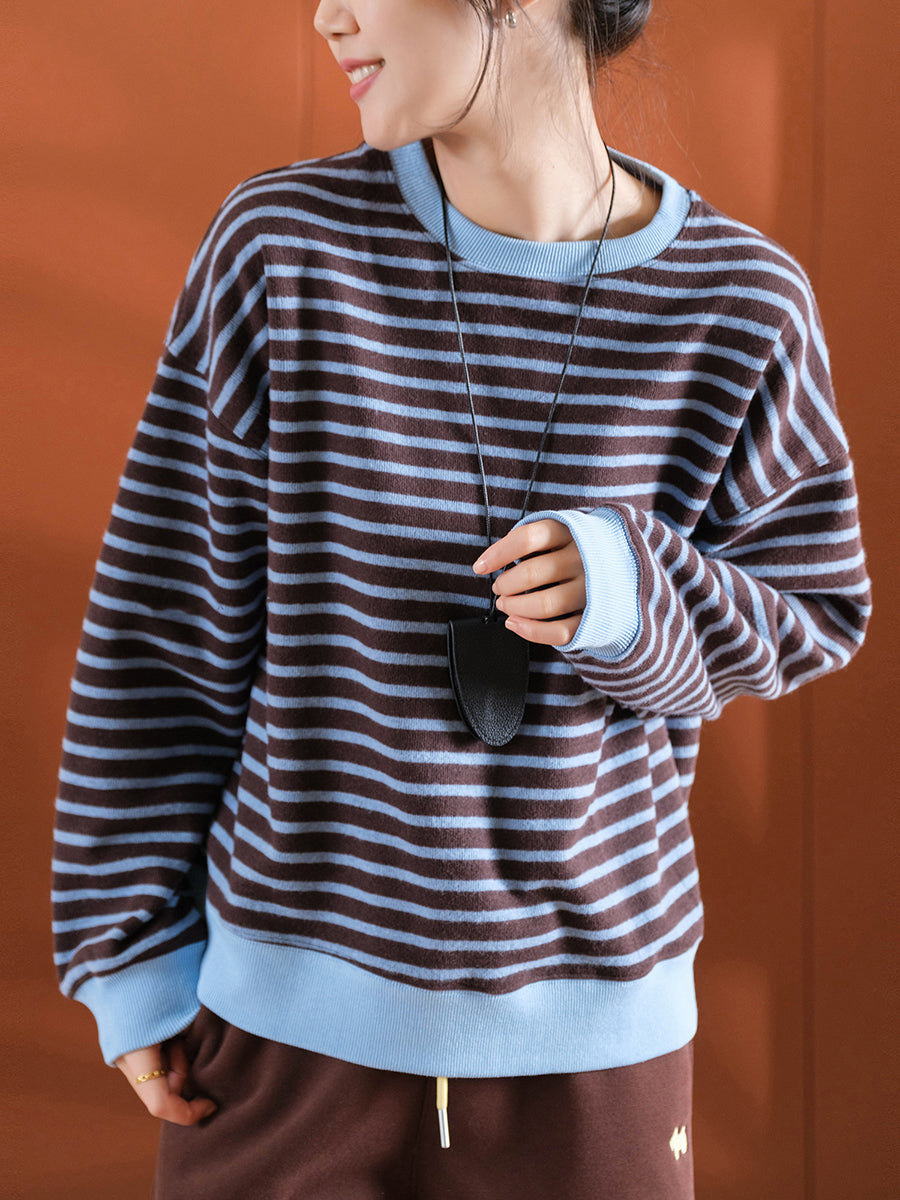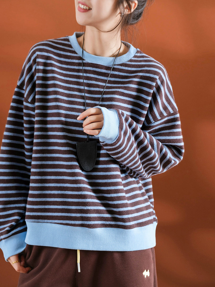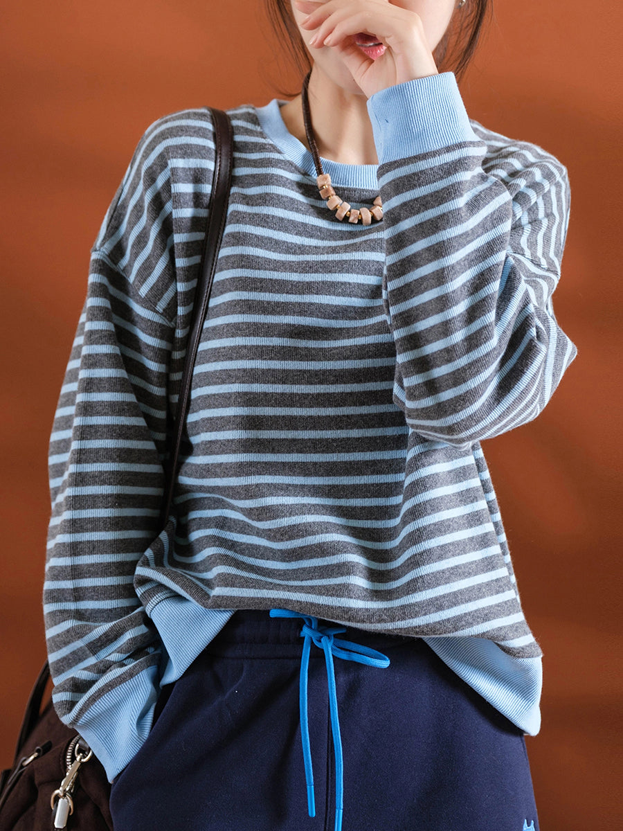 Blusa feminina casual listrada de inverno