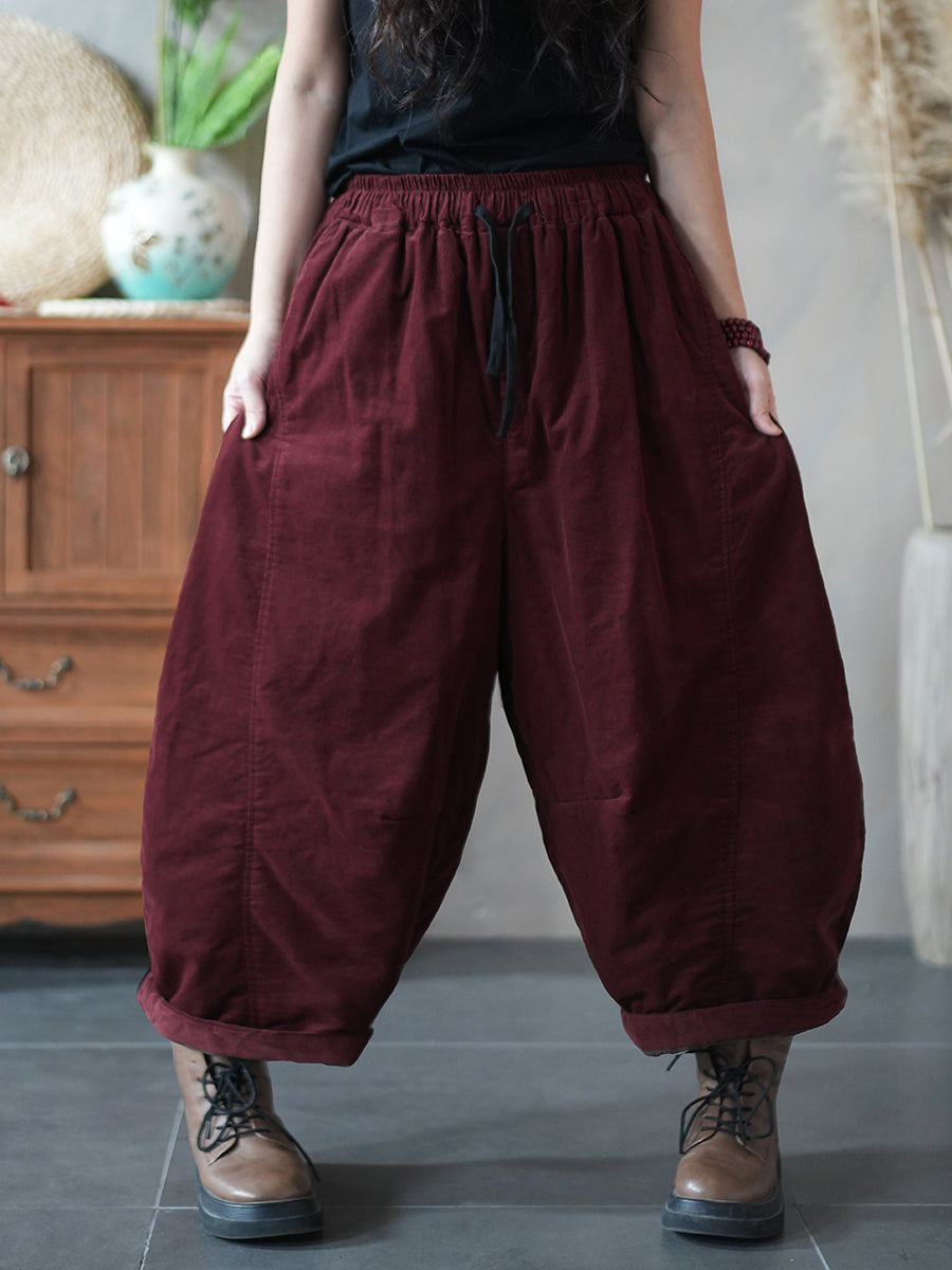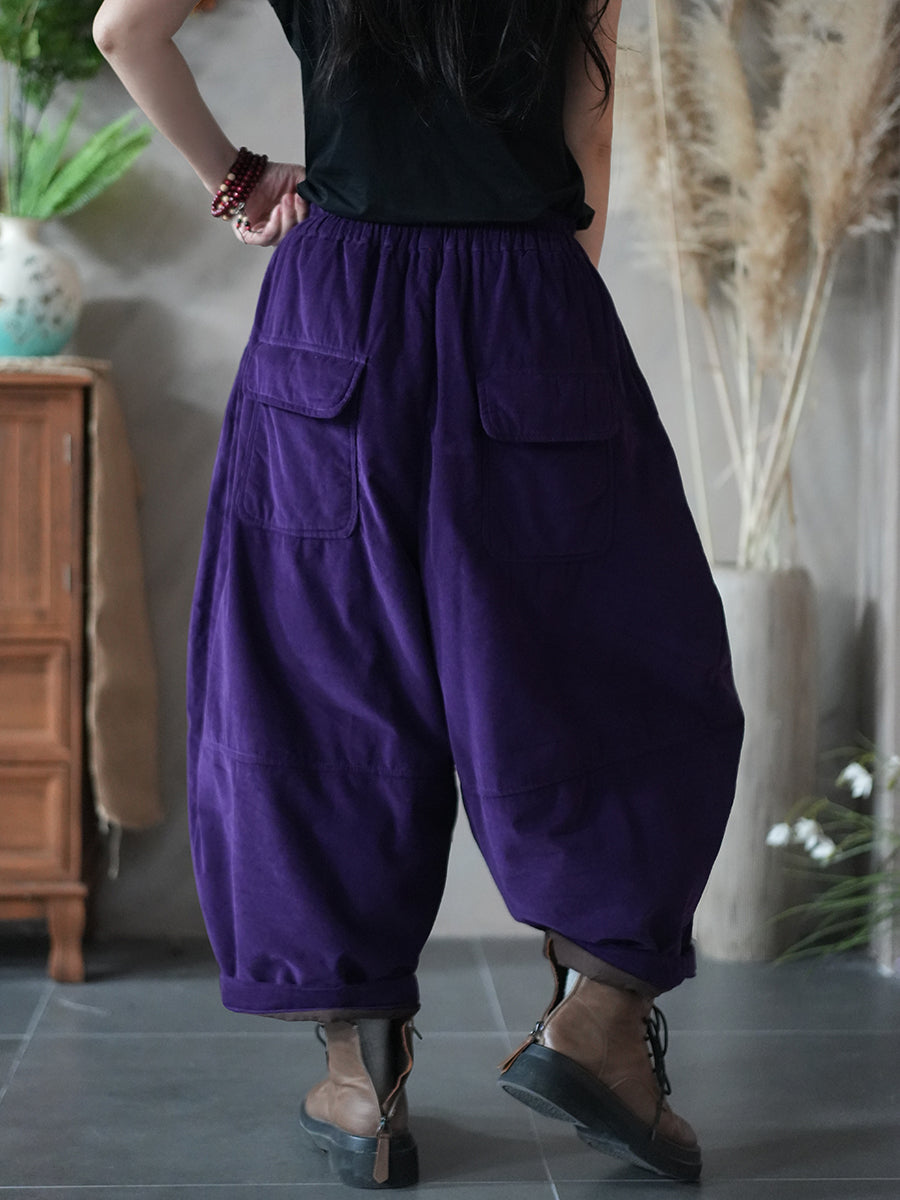 Calções de inverno femininos retrô com enchimento em cores lisas