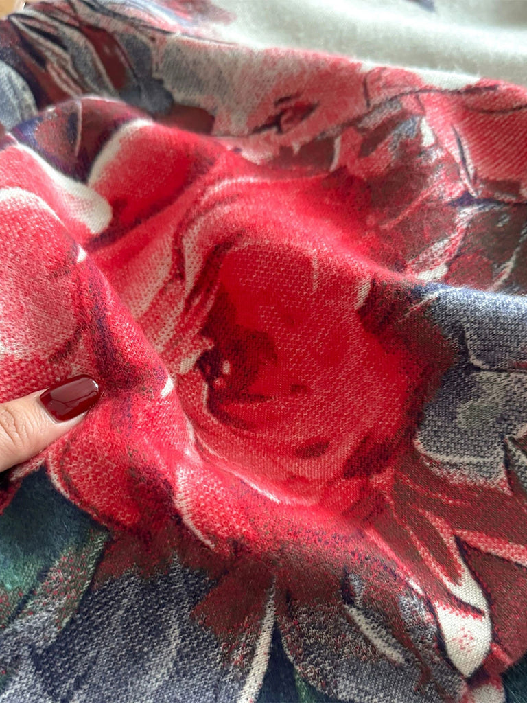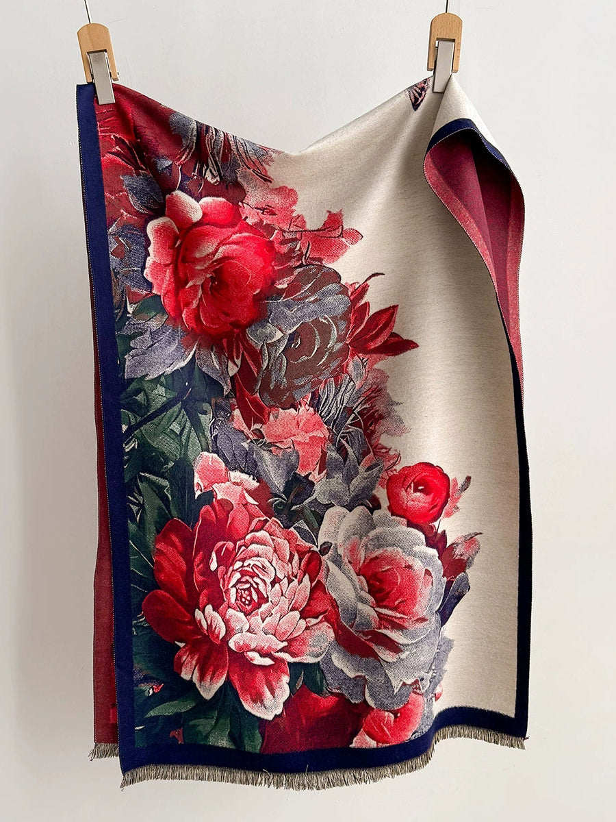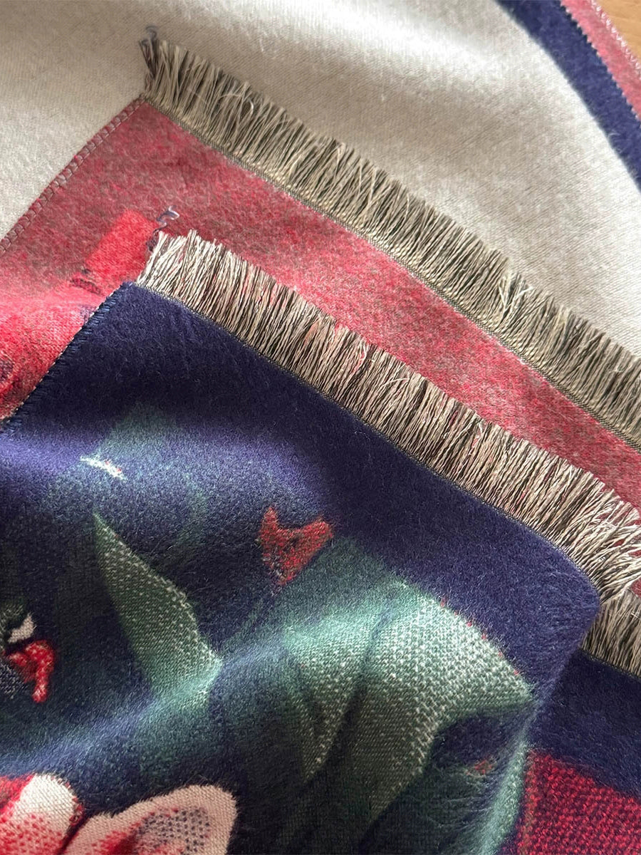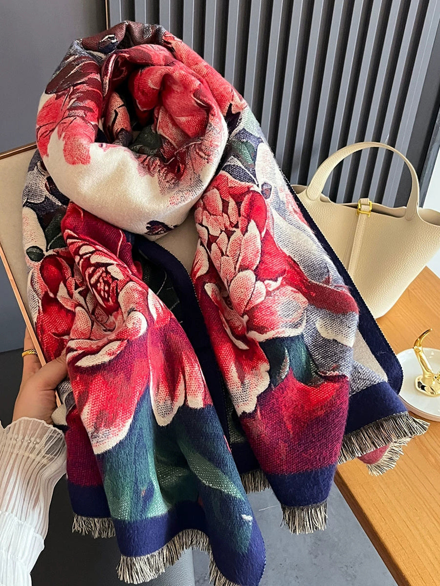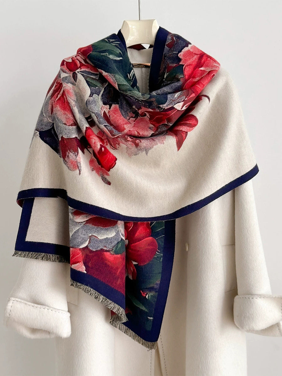 Xale/Cachecol Feminino de Inverno com Borlas de Flores