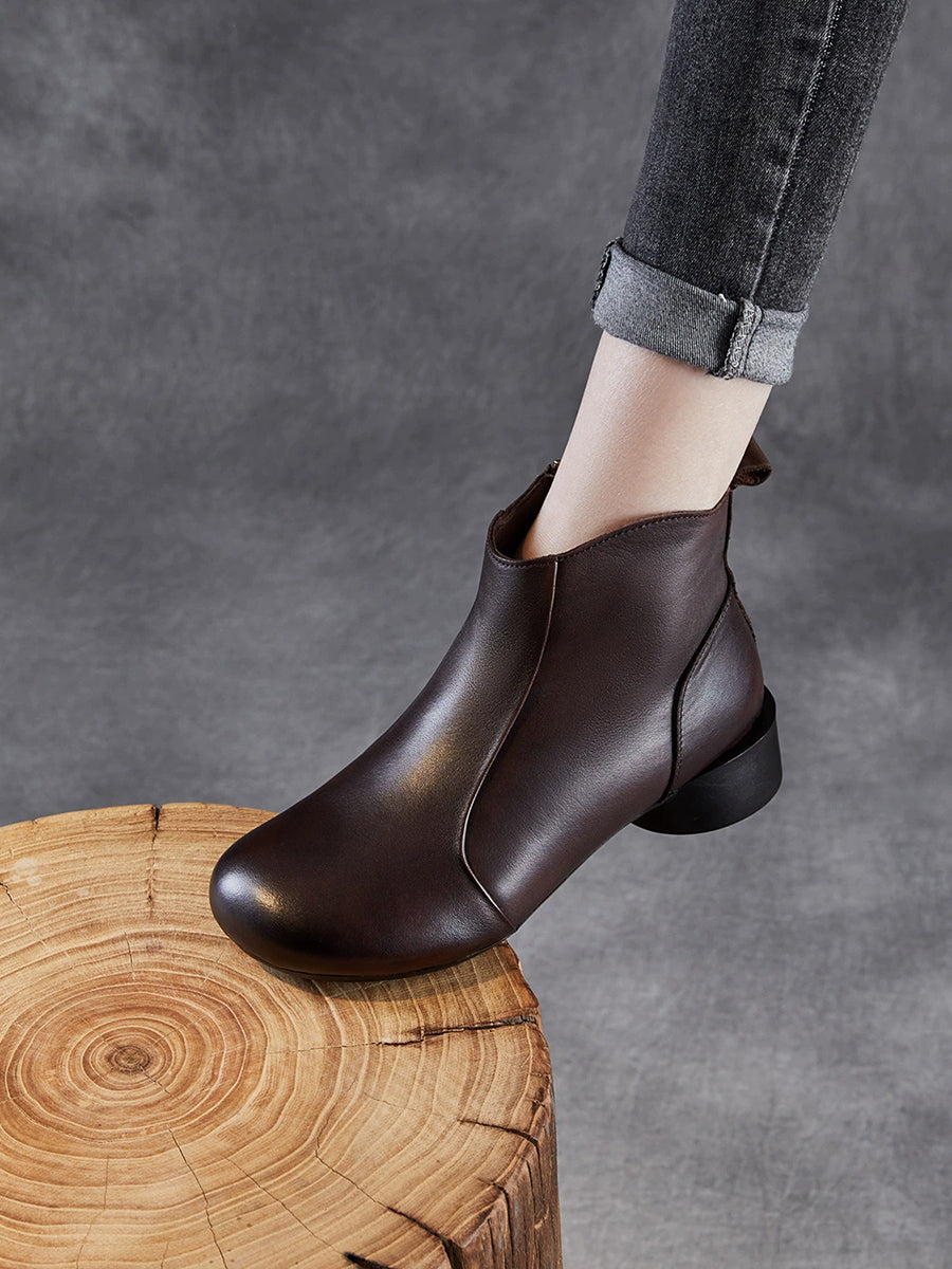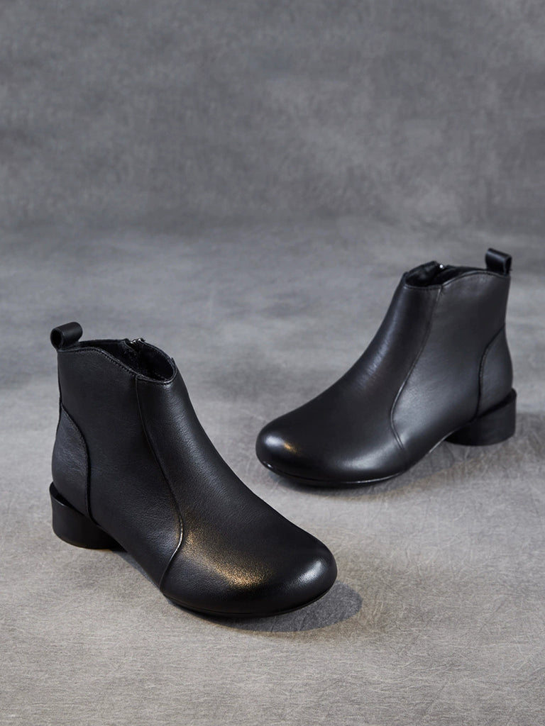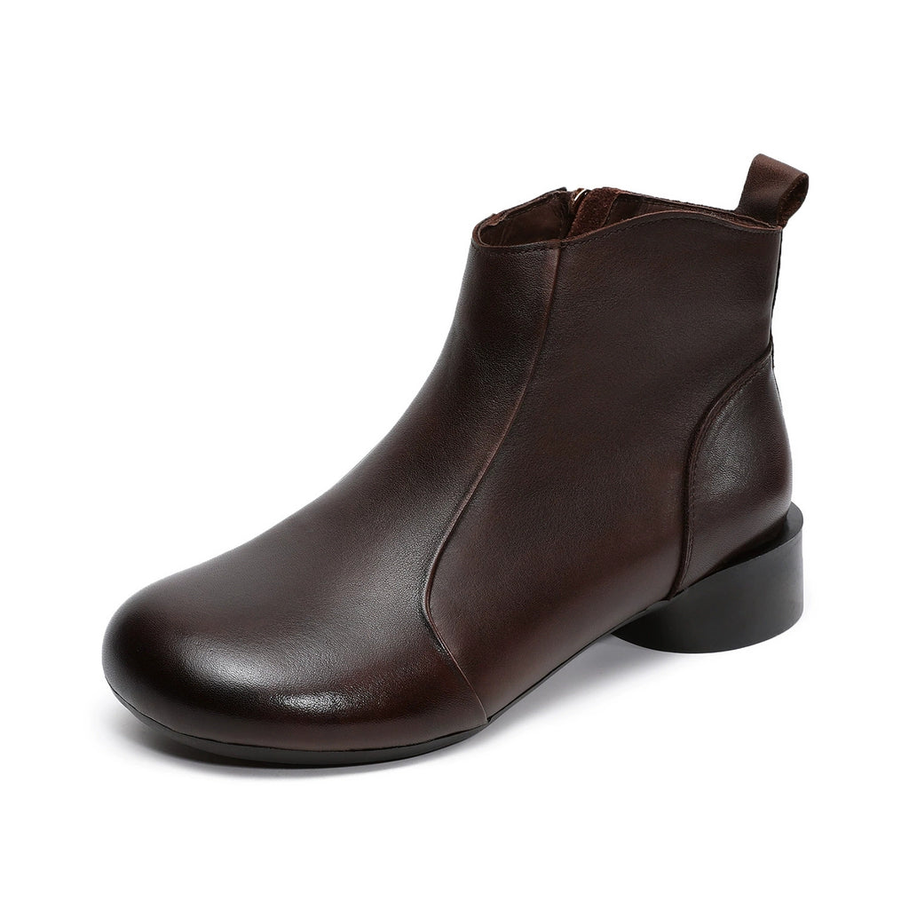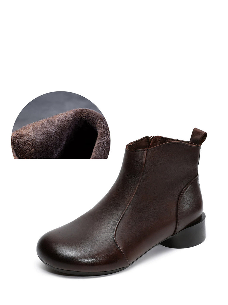 Botas de cano curto femininas de inverno em couro legítimo com salto baixo