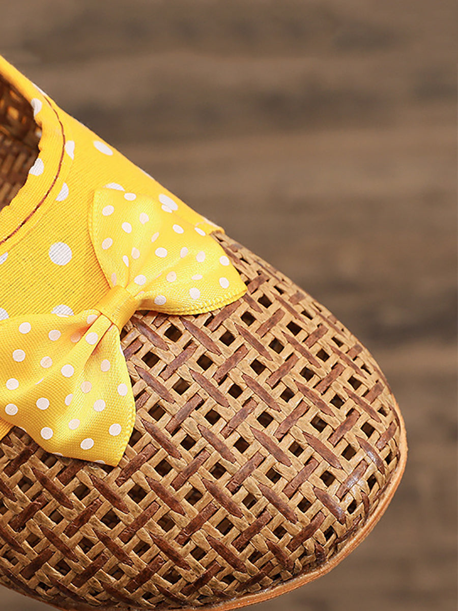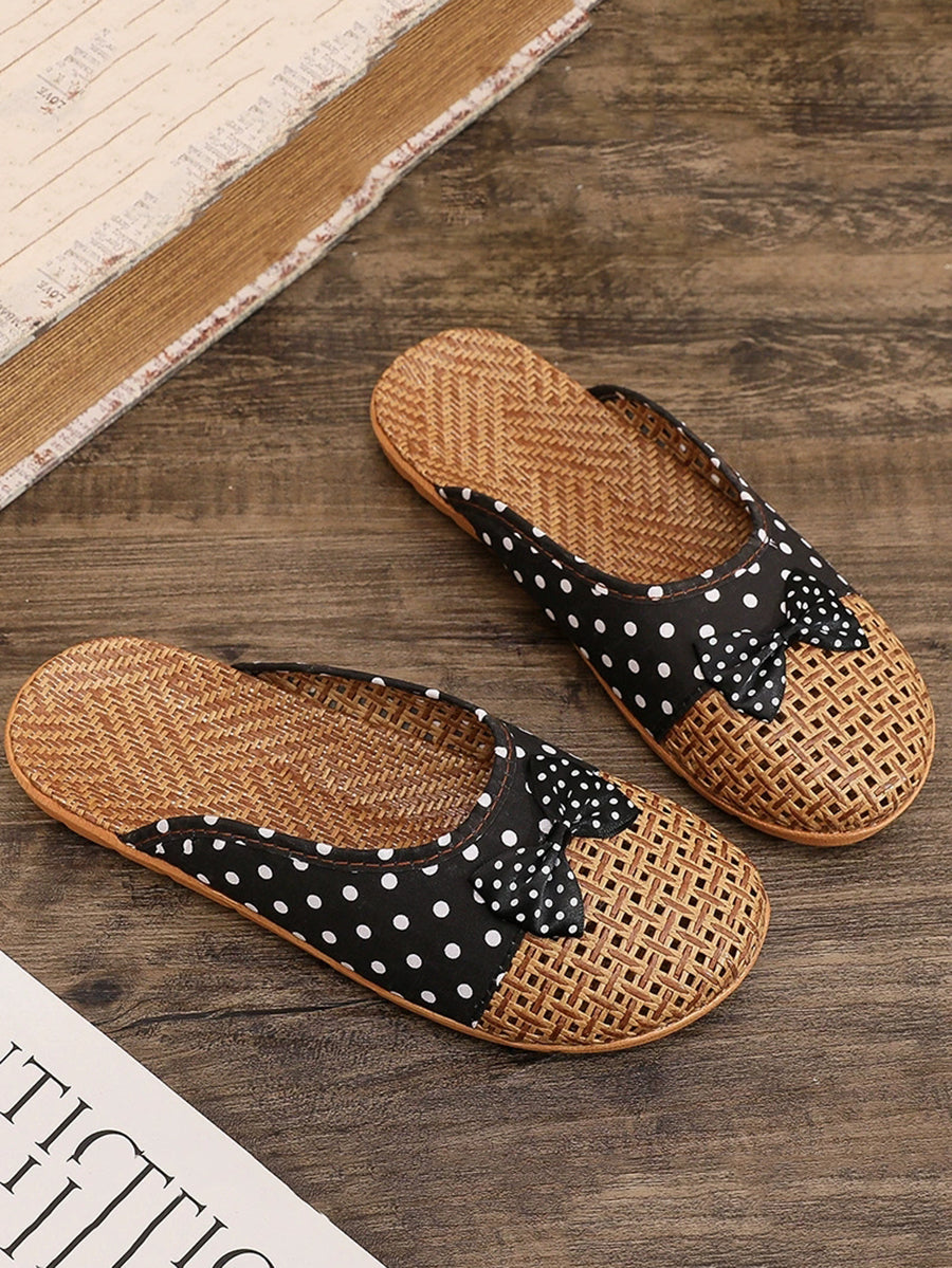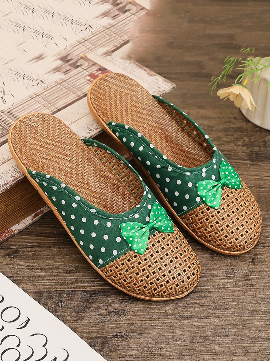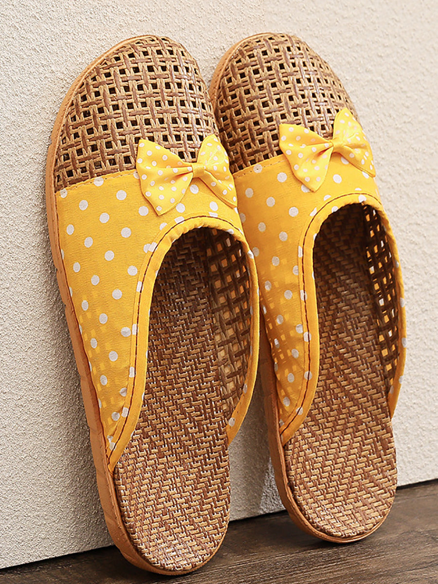 Pantufas de verão para casal, em palha trançada com detalhes em bolinhas.