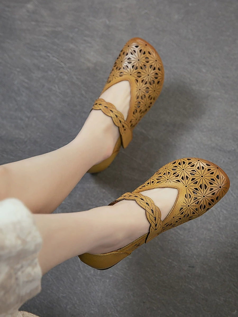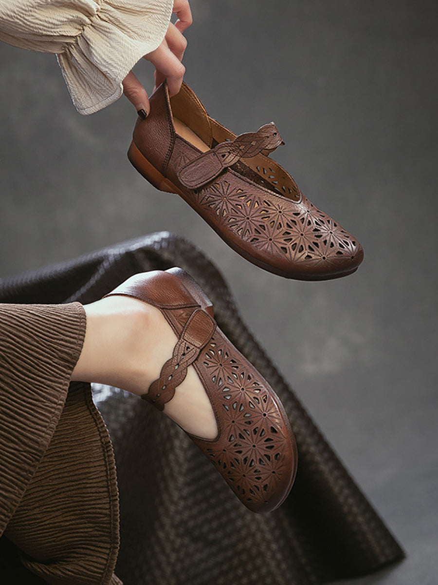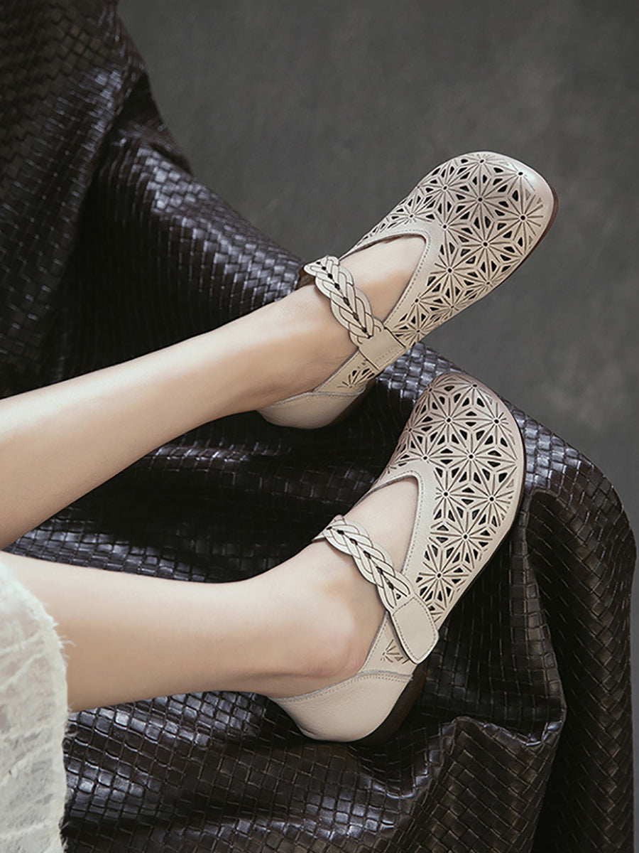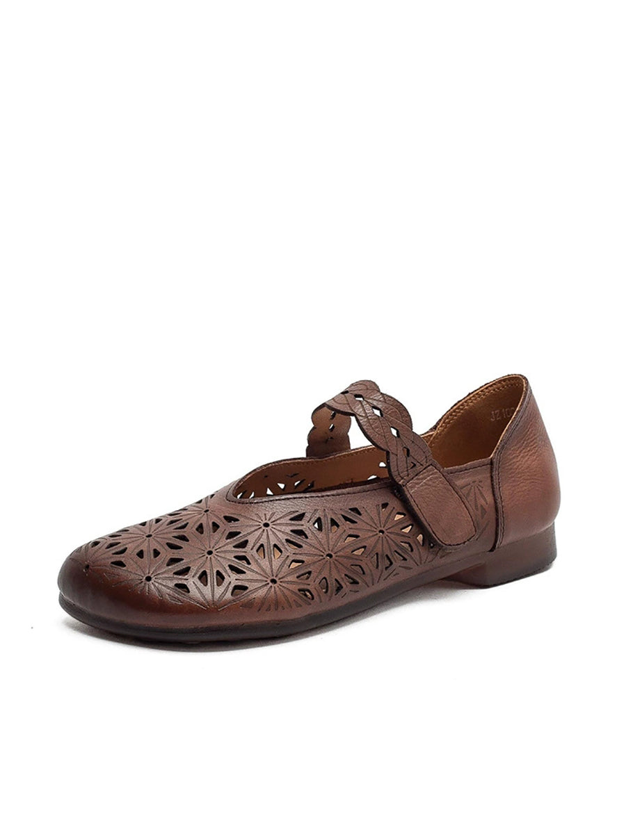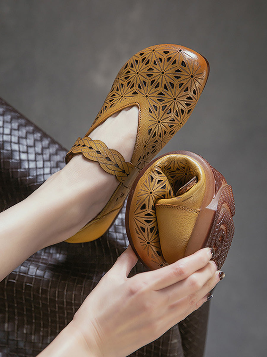 Sandálias femininas de verão em couro legítimo com recortes.