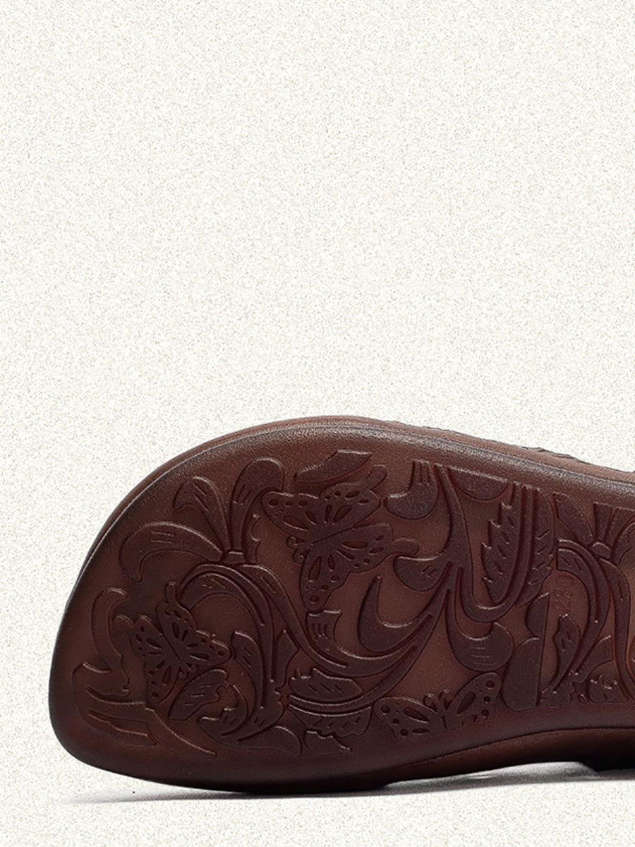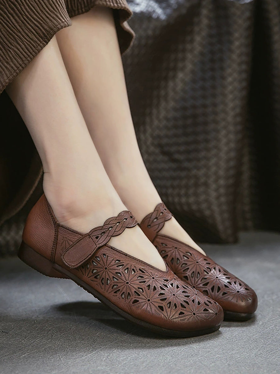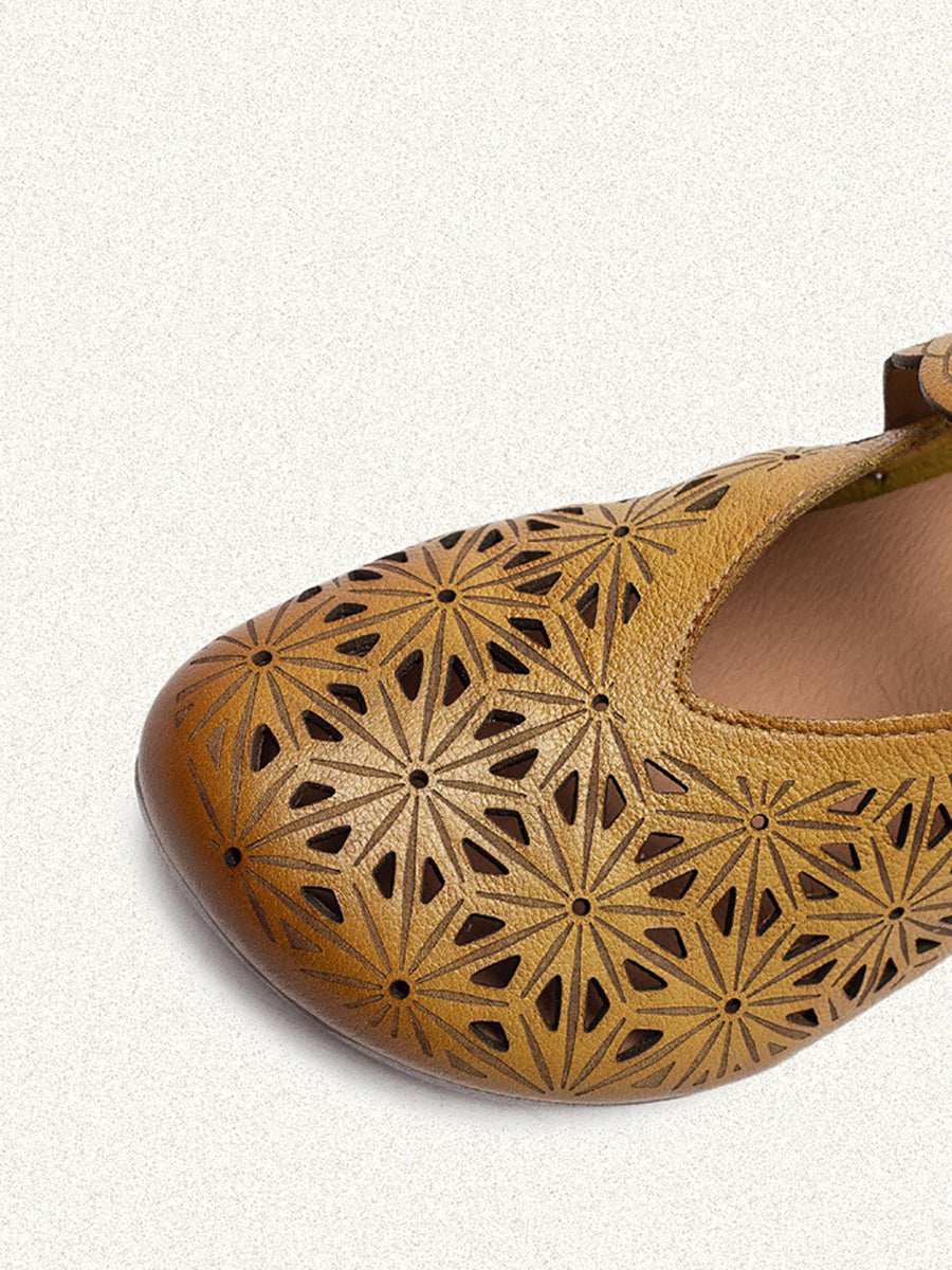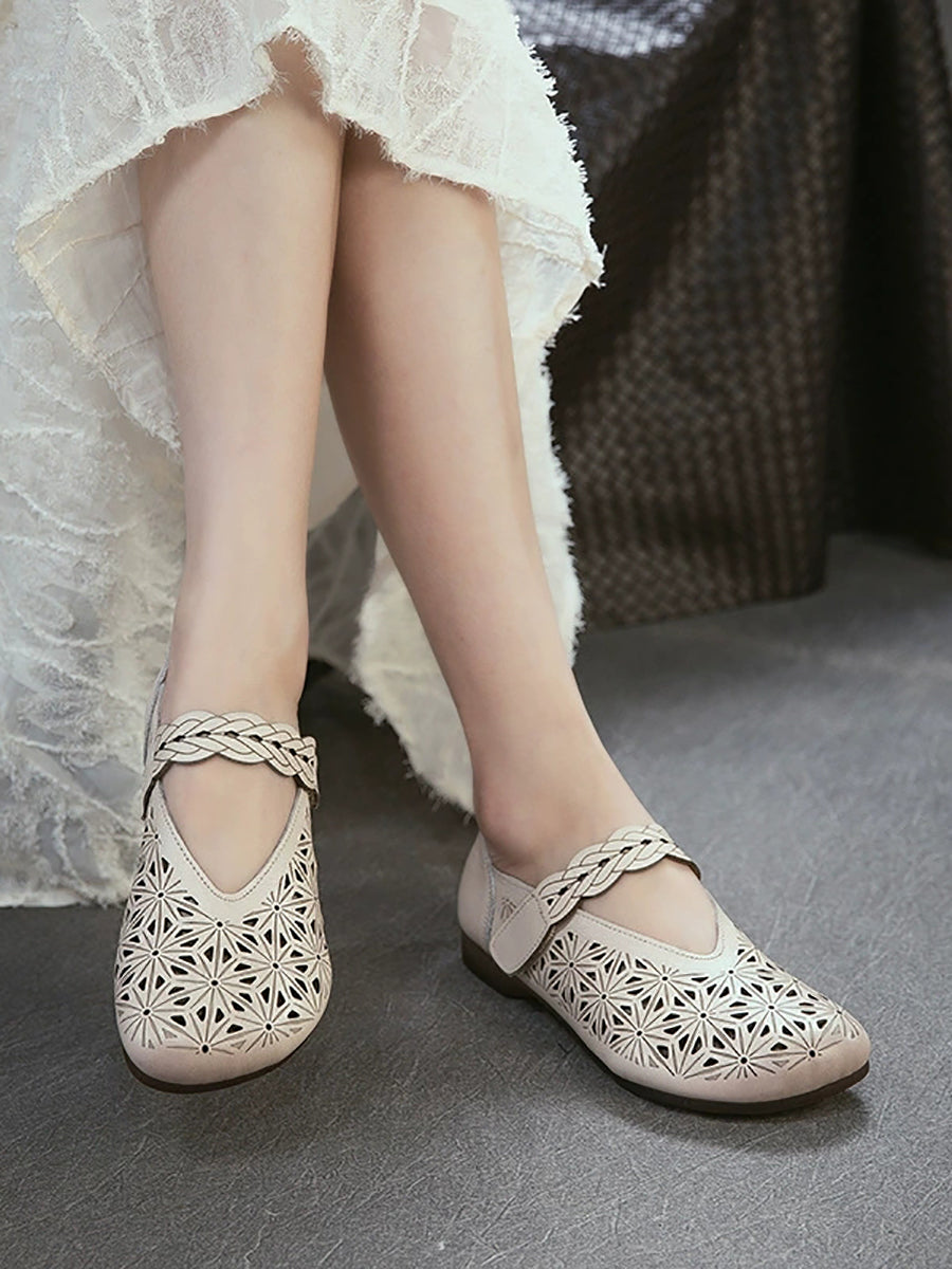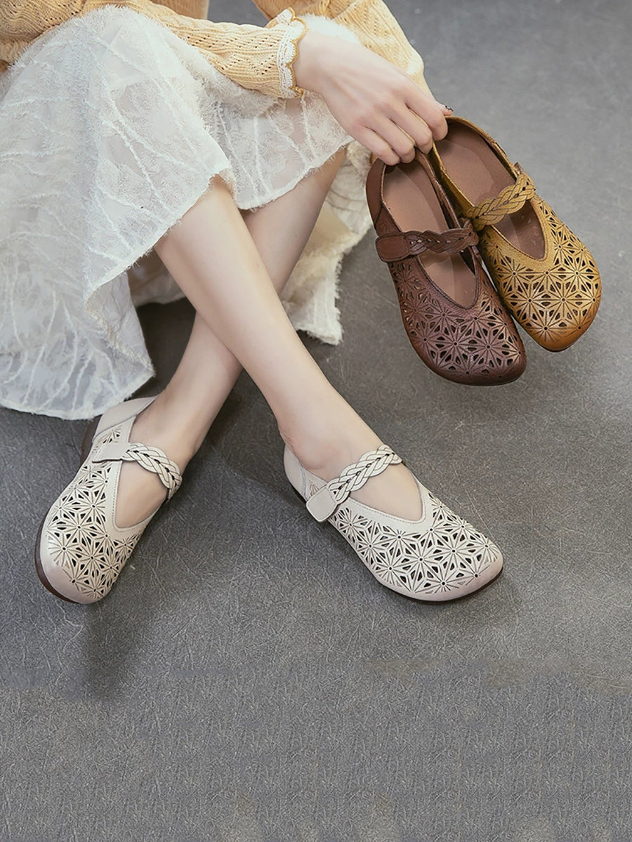 Sandálias femininas de verão em couro legítimo com recortes.