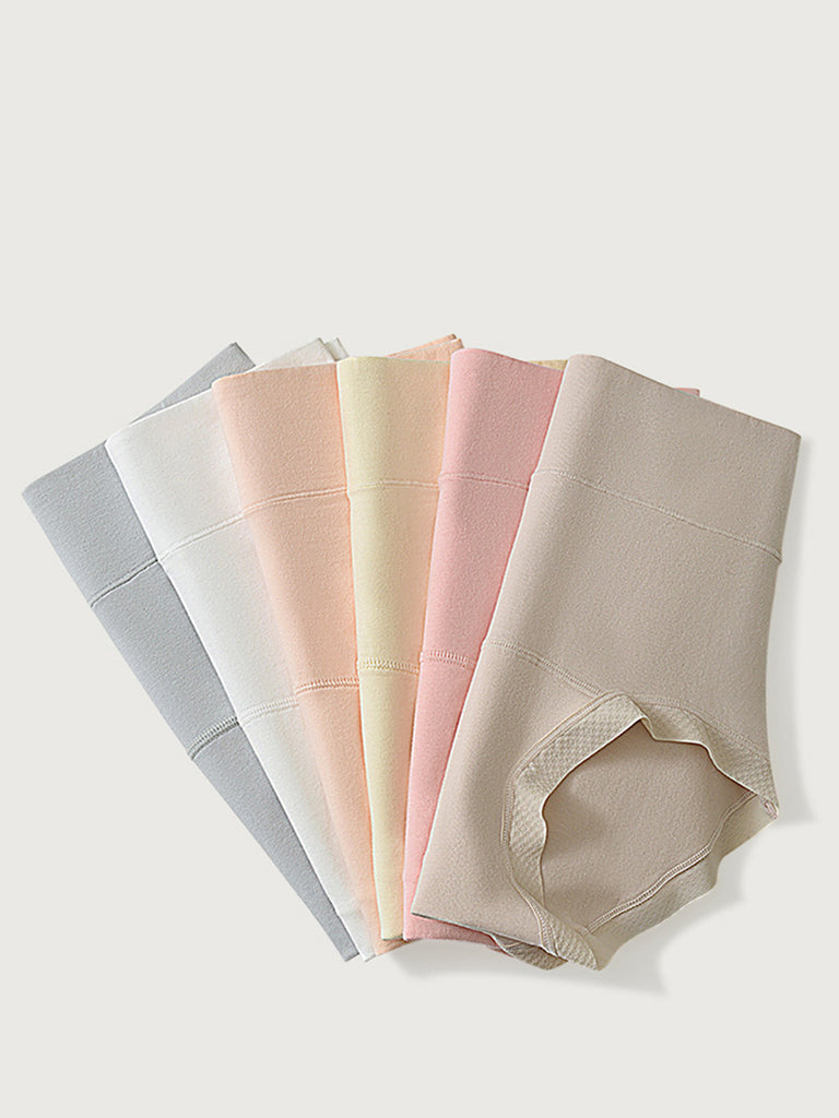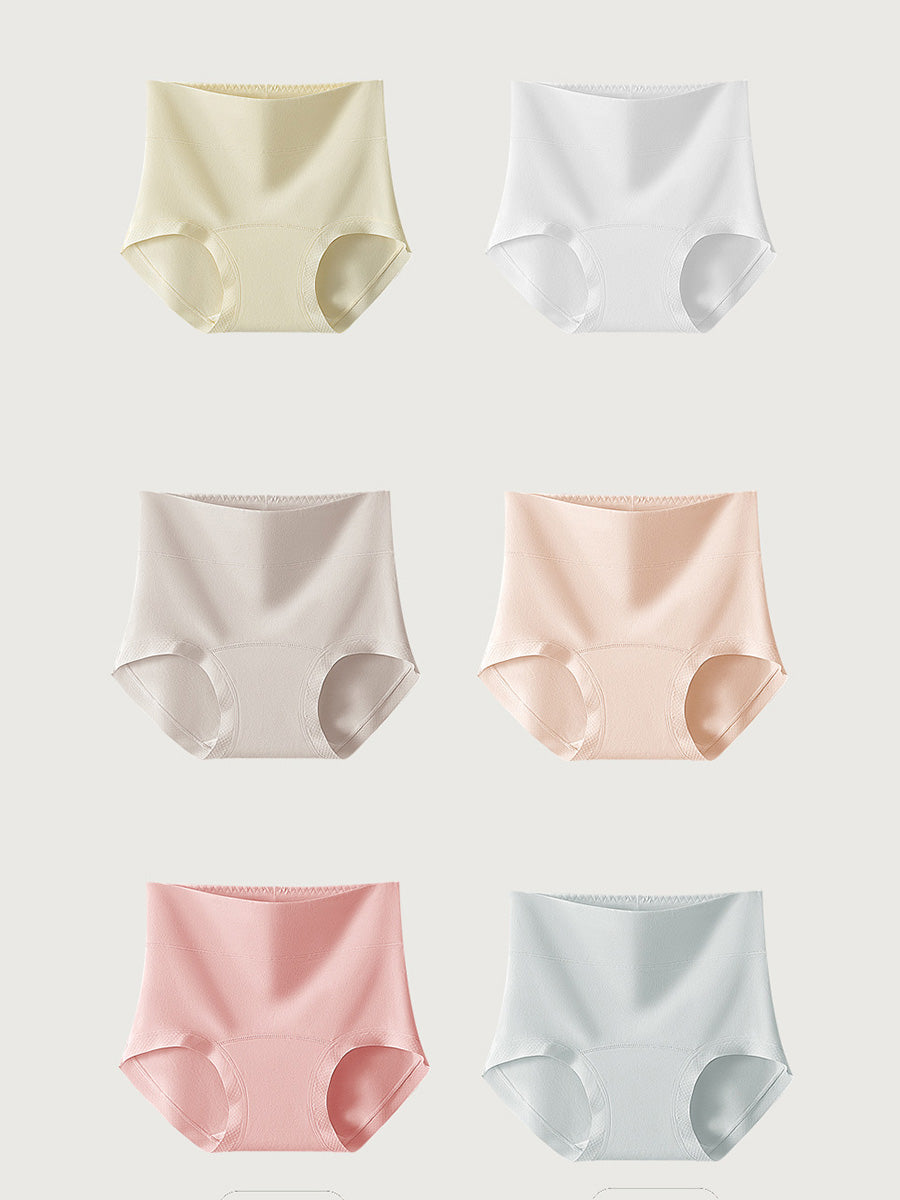 Conjunto de 6 peças de calcinhas femininas de cintura alta em cores lisas