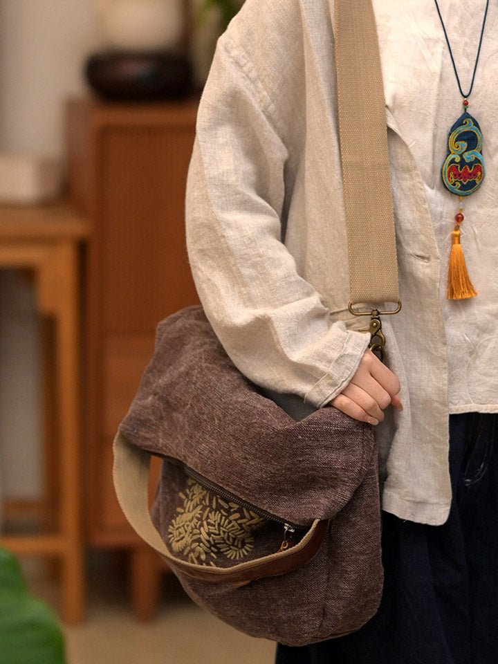 03047 Bolsa de Ombro Retrô com Bordado de Flores