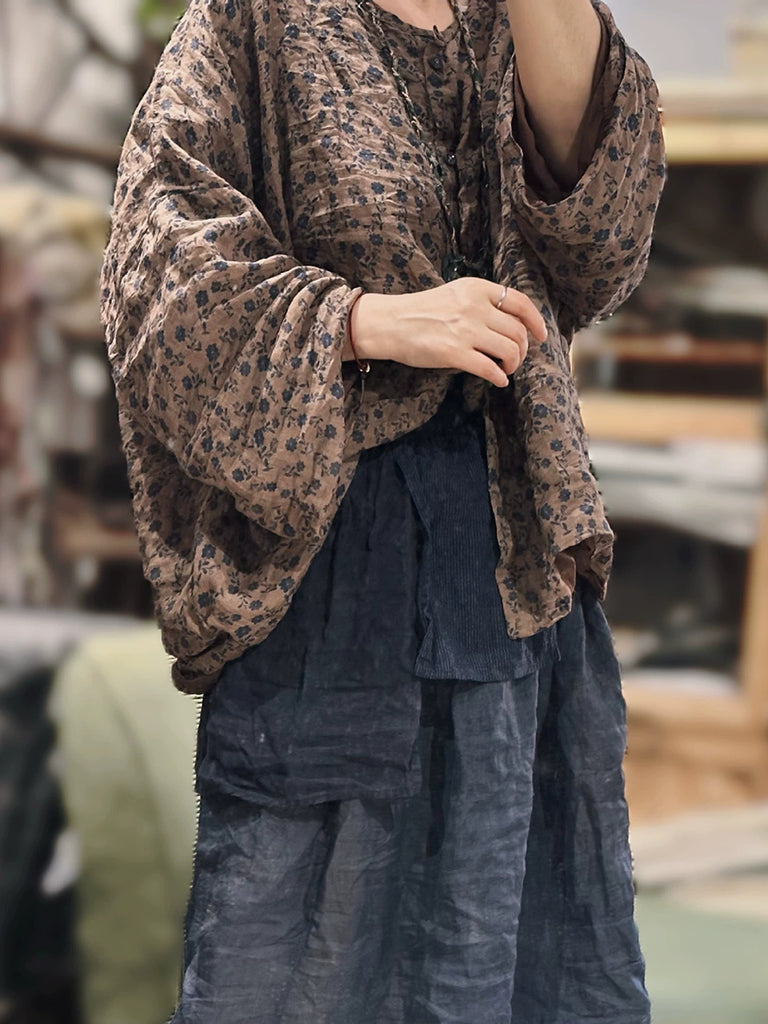 Camisa feminina Artsy Floral Ramie com gola redonda