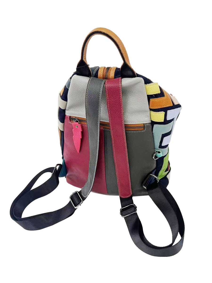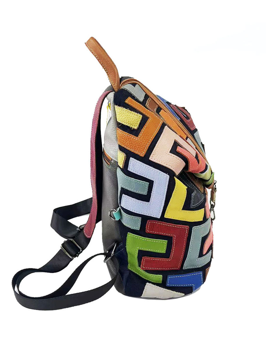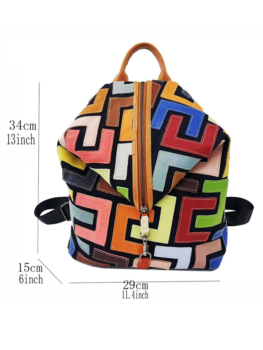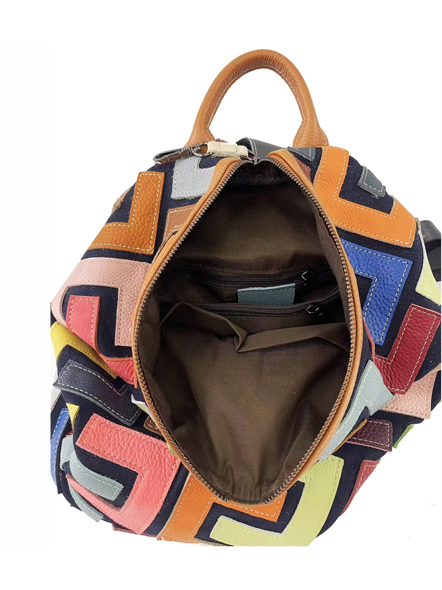 Procurando uma mochila estilosa e funcional? Confira nossa mochila vintage casual com painel de couro colorido! Esta mochila é feita de couro genuíno e tecido de algodão, tornando-a durável e confortável de transportar. Possui muito espaço para guardar seus pertences, com bolso escuro com zíper, bolsa para celular e bolso para identificação. Perfeita para o uso diário ou em viagens, esta mochila é obrigatória!