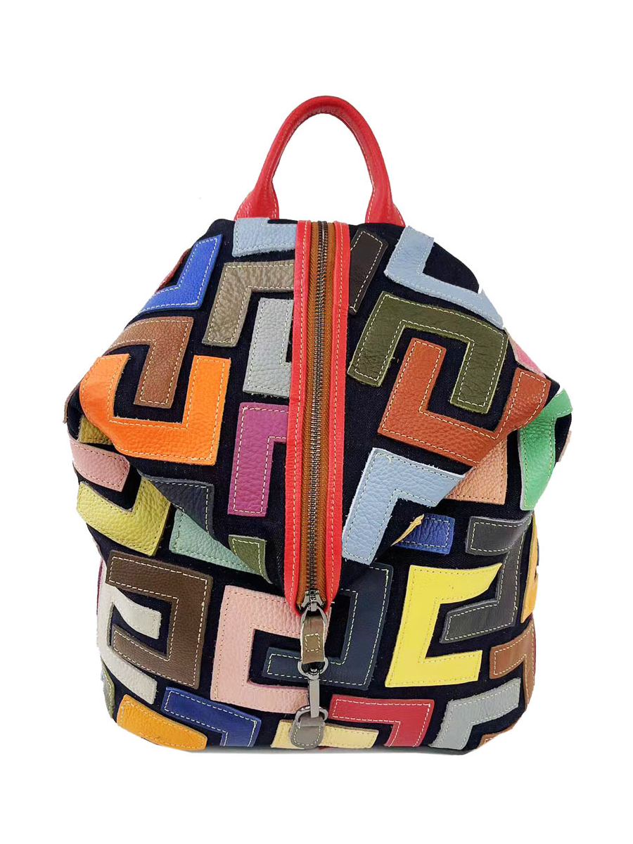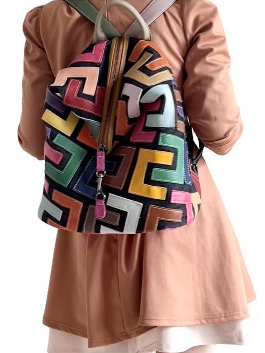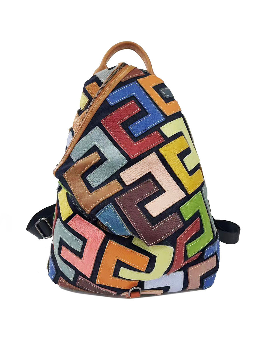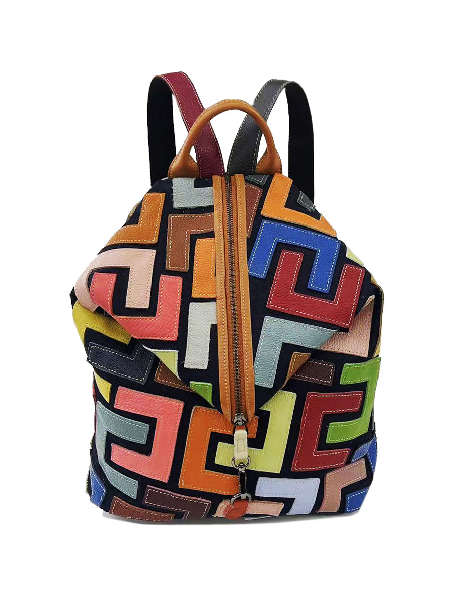 Procurando uma mochila estilosa e funcional? Confira nossa mochila vintage casual com painel de couro colorido! Esta mochila é feita de couro genuíno e tecido de algodão, tornando-a durável e confortável de transportar. Possui muito espaço para guardar seus pertences, com bolso escuro com zíper, bolsa para celular e bolso para identificação. Perfeita para o uso diário ou em viagens, esta mochila é obrigatória!
