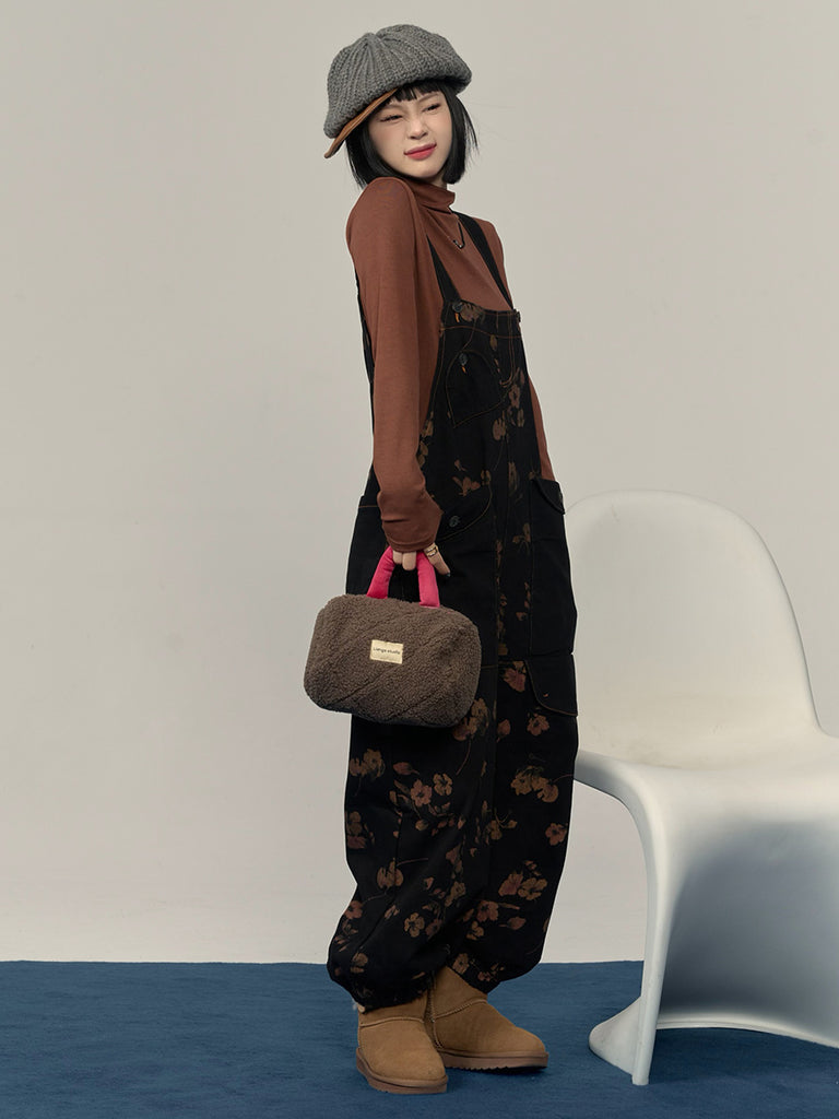 Macacões soltos de veludo cotelê sólido vintage feminino
