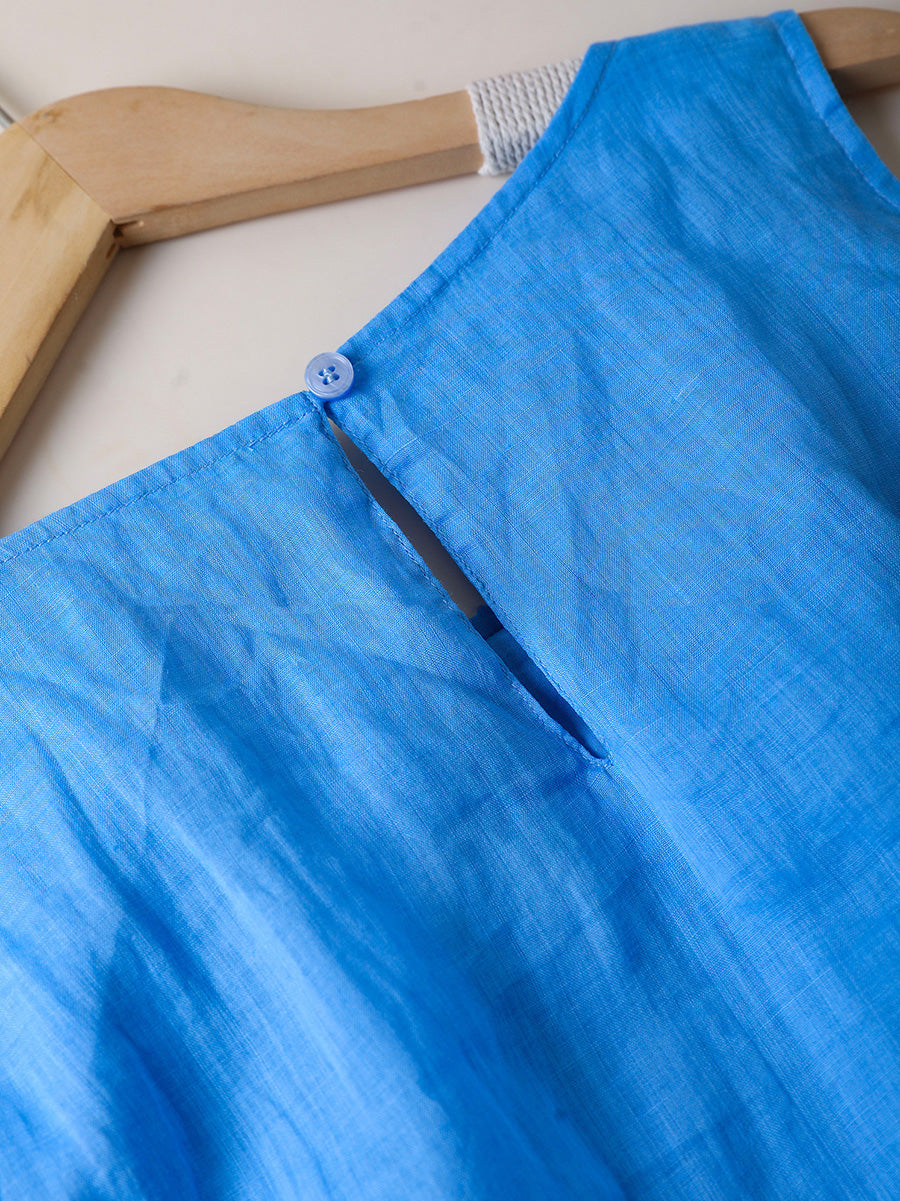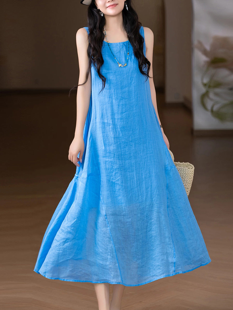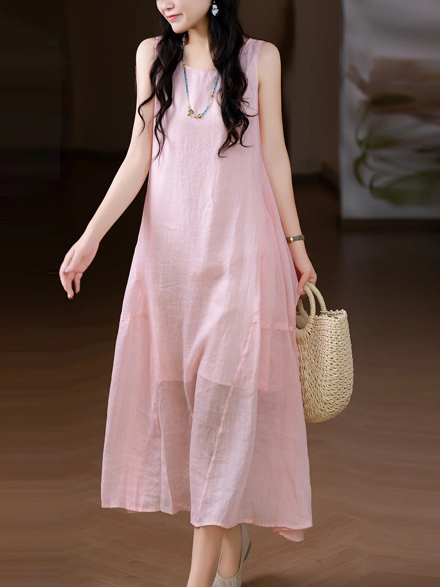 Vestido colete feminino de verão, estilo artístico, cor lisa, 100% rami.