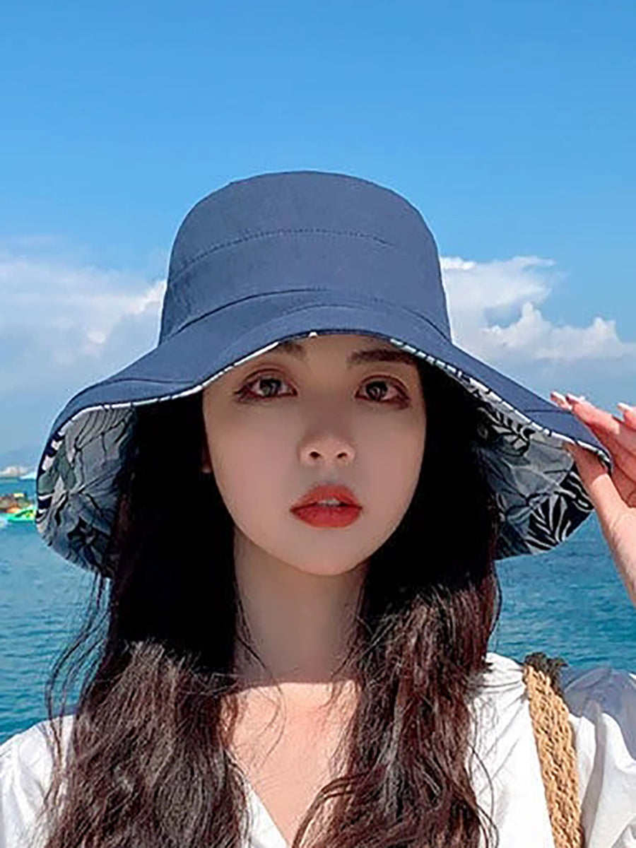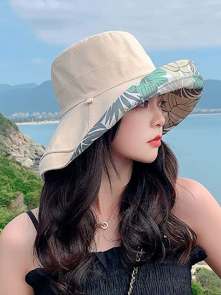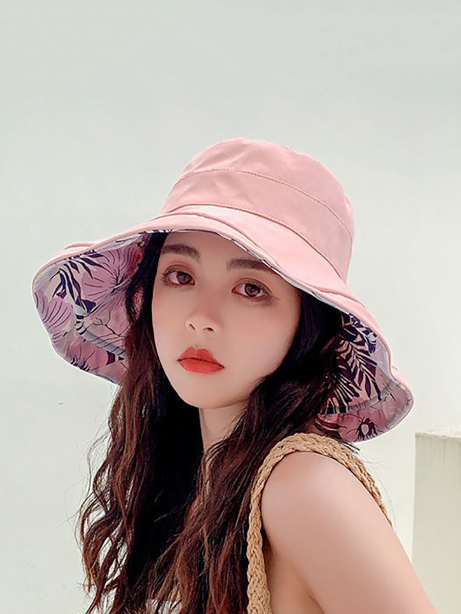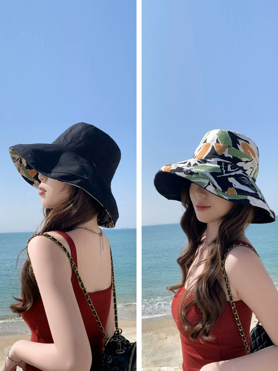 Chapéu feminino de verão com estampa floral e design de duas faces