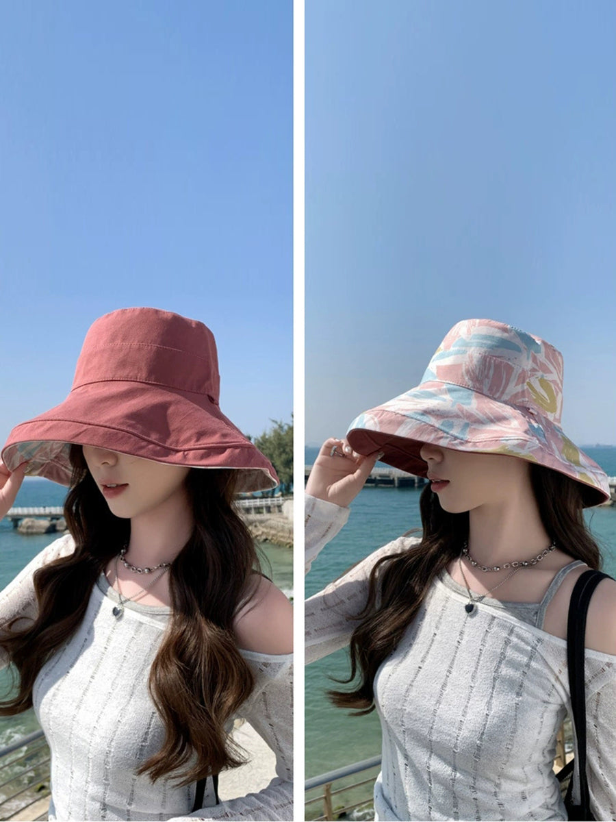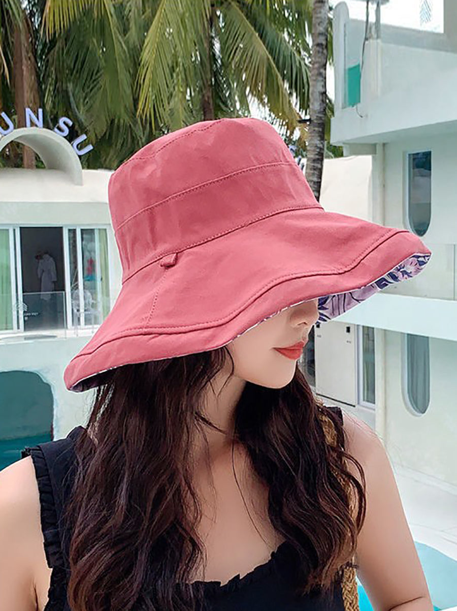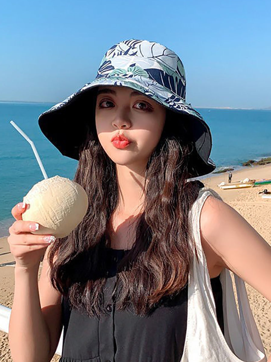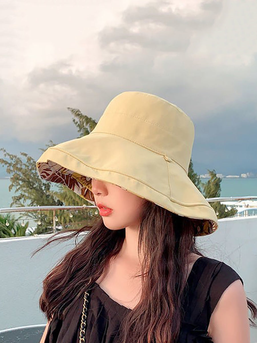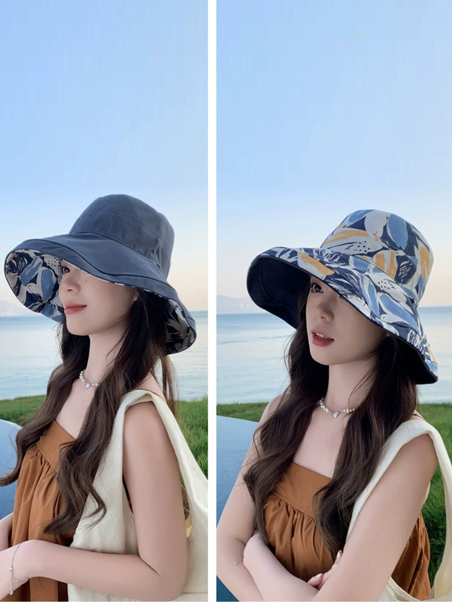 Chapéu feminino de verão com estampa floral e design de duas faces