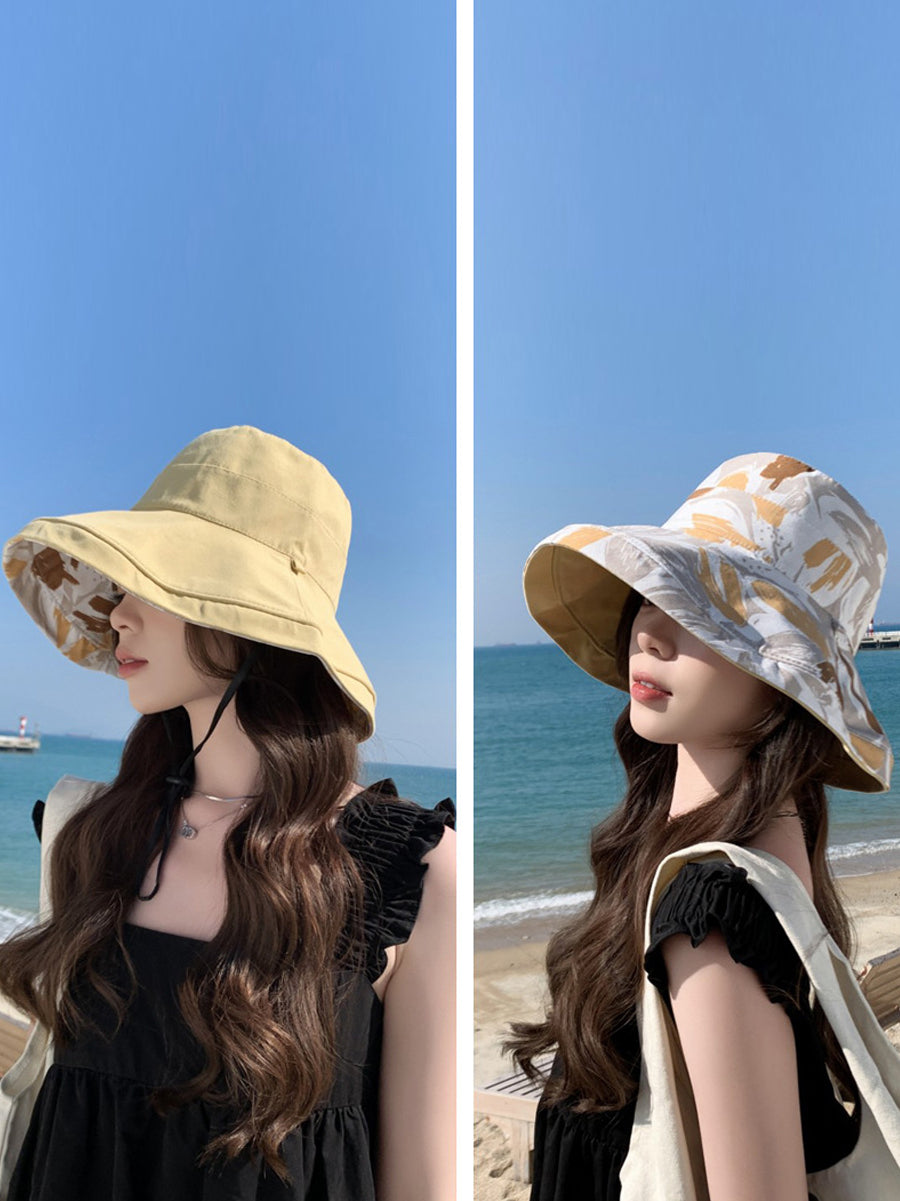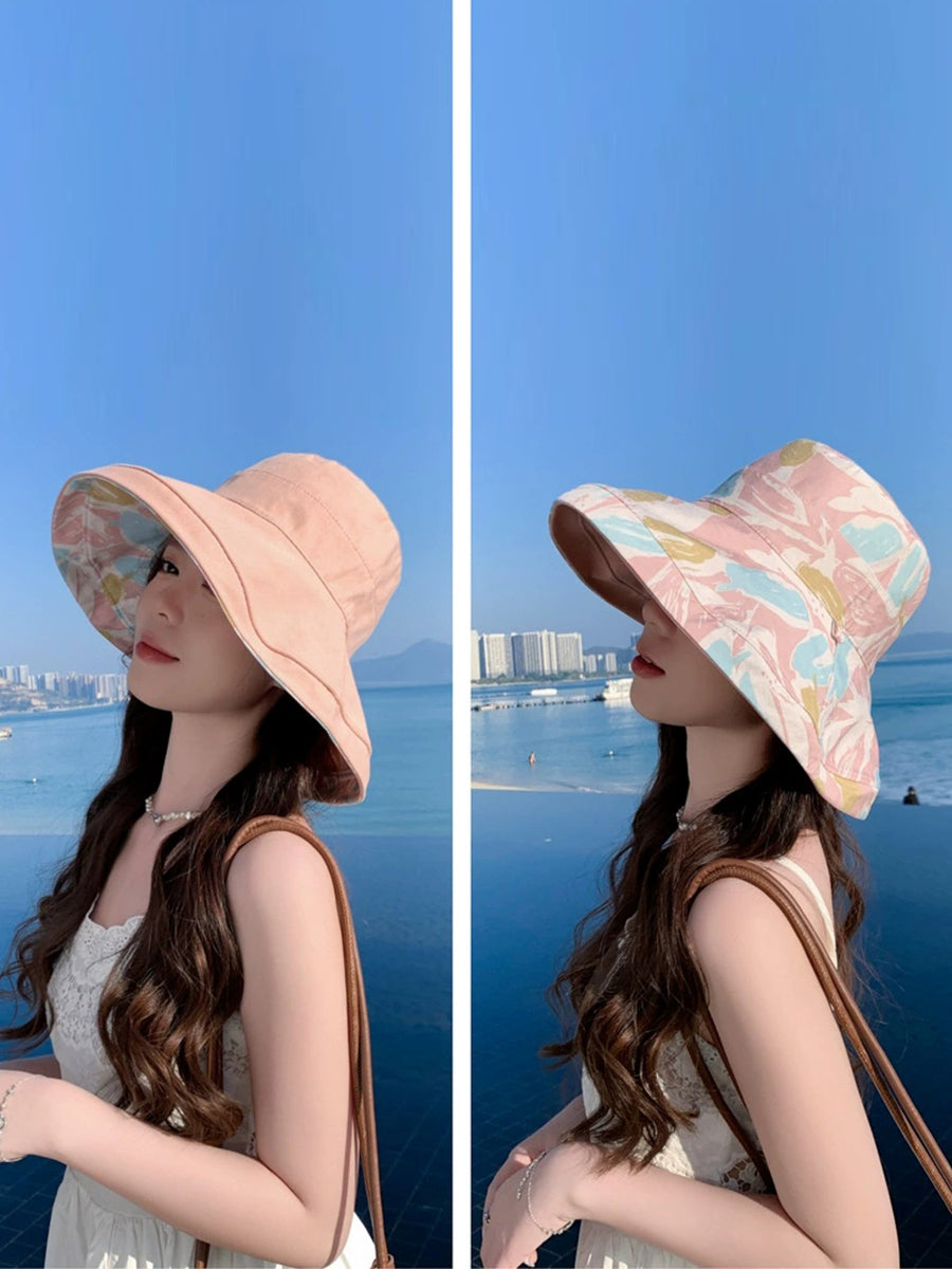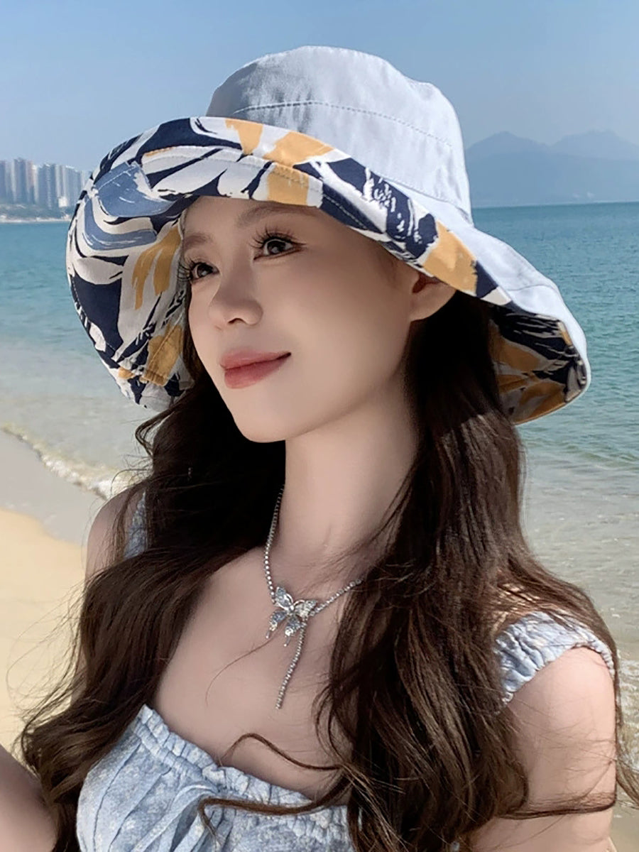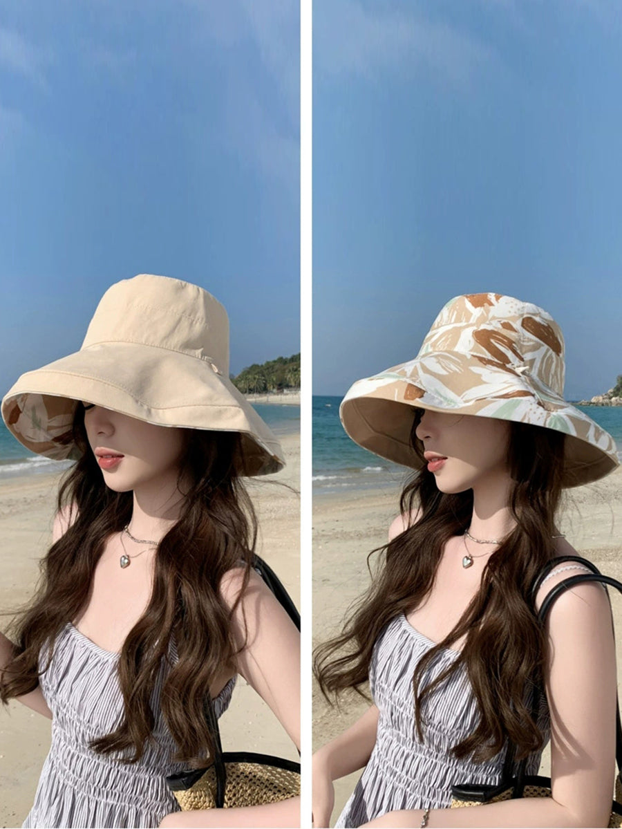 Chapéu feminino de verão com estampa floral e design de duas faces